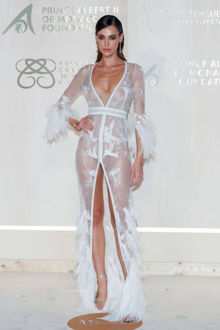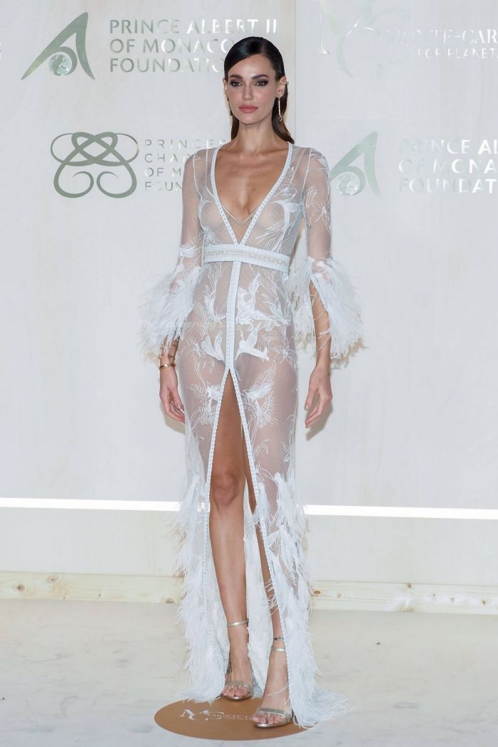 31-летняя бразильская супермодель Марианна Фонсека (Marianne Fonseca) в просвечивающем платье позирует на красной дорожке в преддверии Гала-концерта 2021 года в Монте-Карло, посвященного планетарному здоровью, в Монако