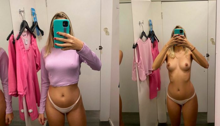 Большая порция горячих фотографий красивых девушек на которых они позируют на первой фотографии одетые, а на следующей уже раздетые.