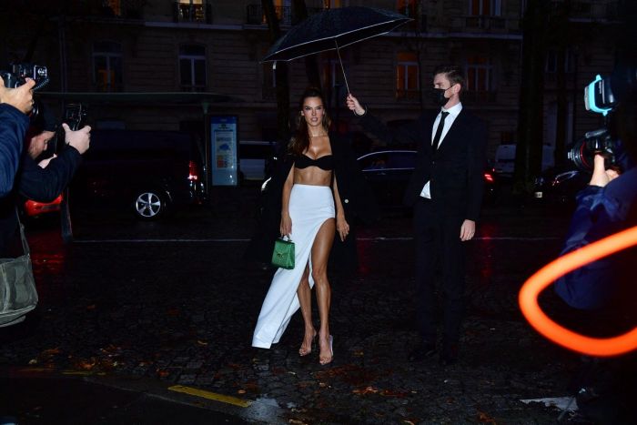 40-летняя бразильская супермодель Алессандра Амбросио (Alessandra Ambrosio) в сексуальном наряде прибыла на вечеринку “Vogue Paris Celebrates 100” во время Недели моды Весна/Лето 2022 года в Париже.