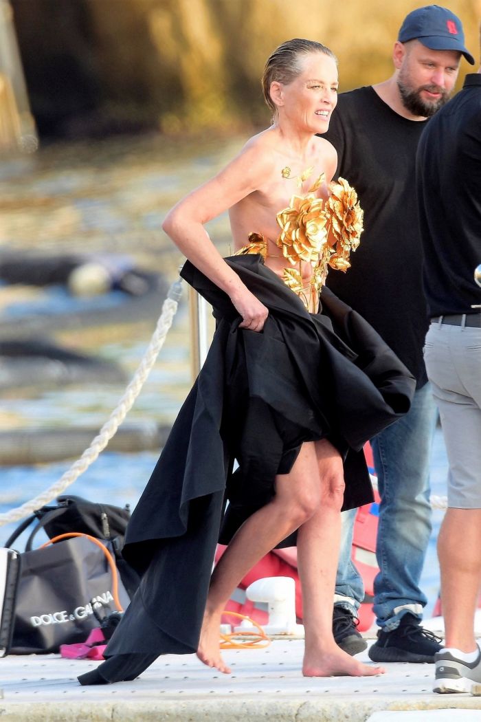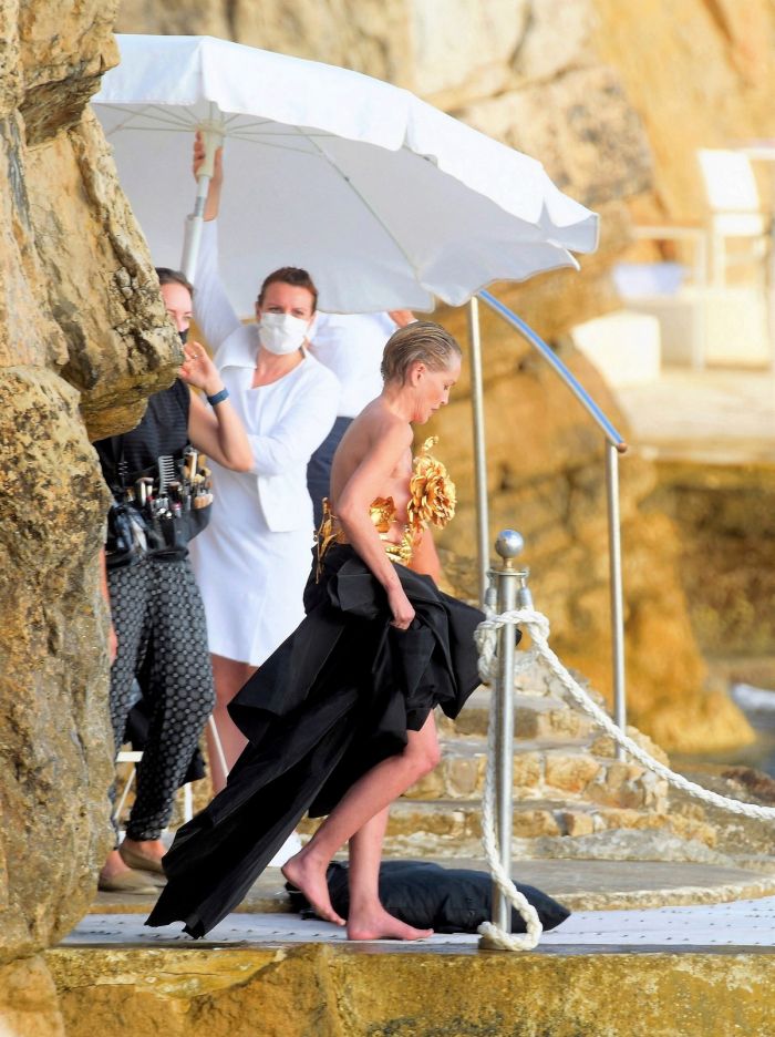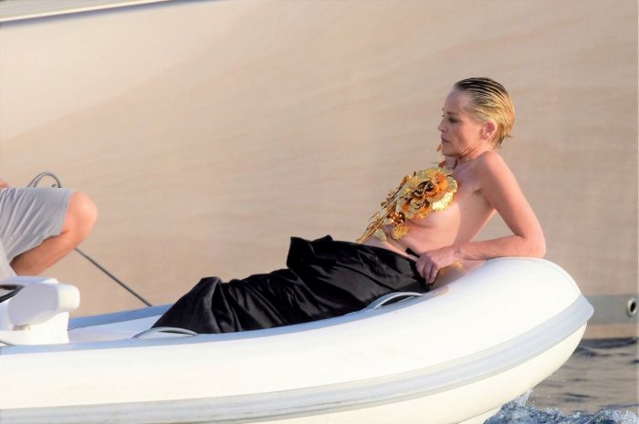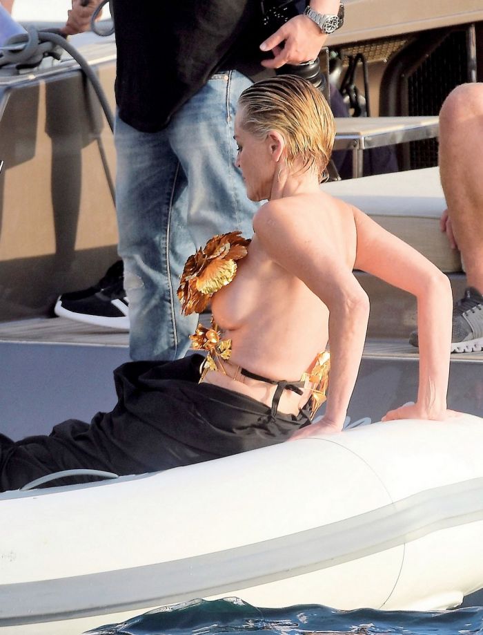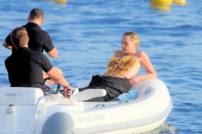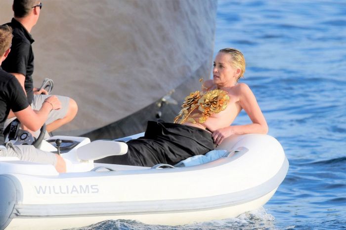 63-летняя американская актриса, продюсер и бывшая модель Шэрон Стоун (Sharon Stone) топлес во Франции.