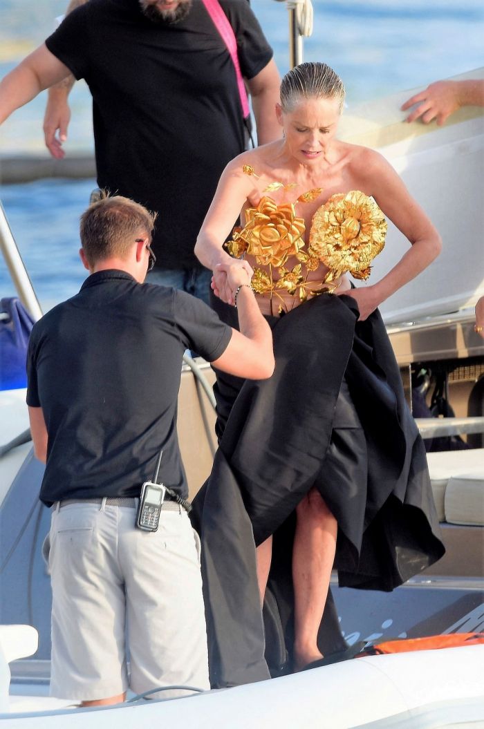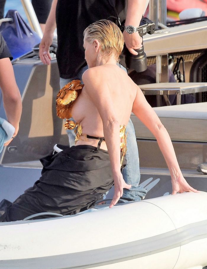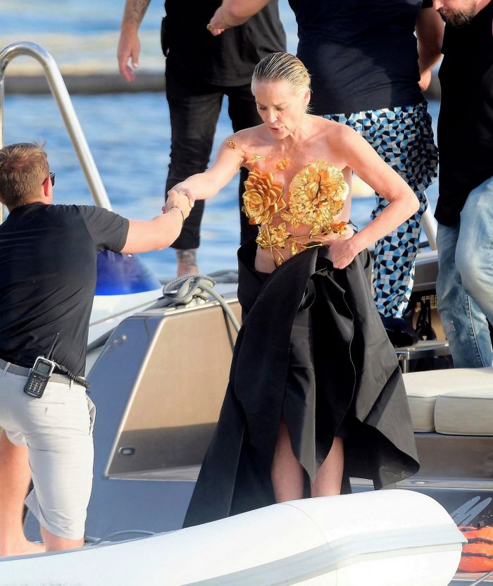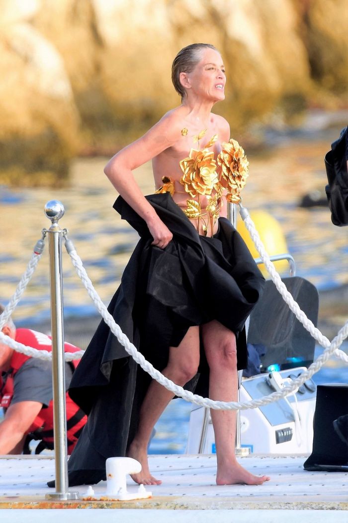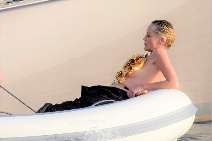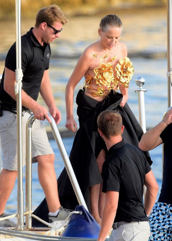 63-летняя американская актриса Шэрон Стоун (Sharon Stone) показала грудь во Франции