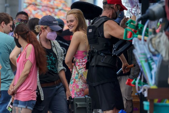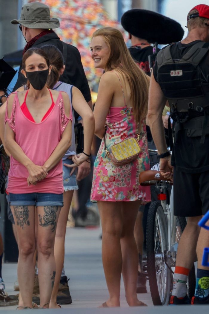 23-летняя американская актриса Эль Фаннинг (Elle Fanning) прокатилась на велосипеде во время съемок сериала “texting suicide case” на острове Тайби, штат Джорджия.