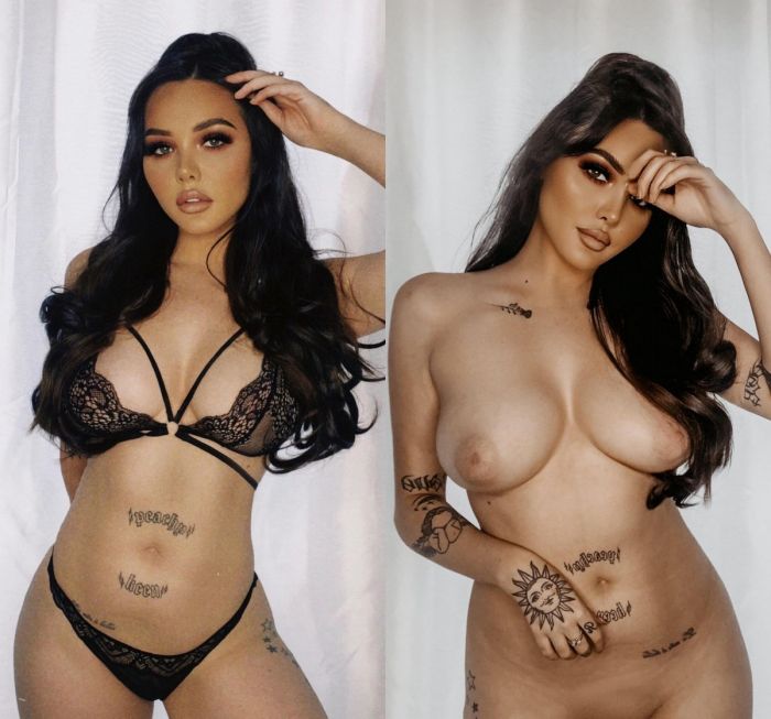Большая подборка фотографий НЮ на которых красивые и молодые девушки позируют сначала одетые, а в следующем кадре уже раздетые.