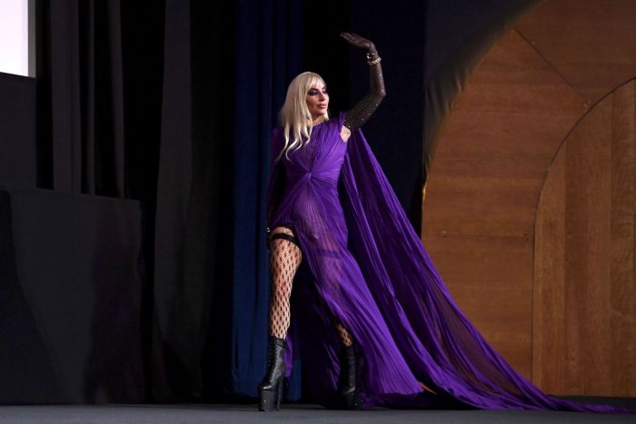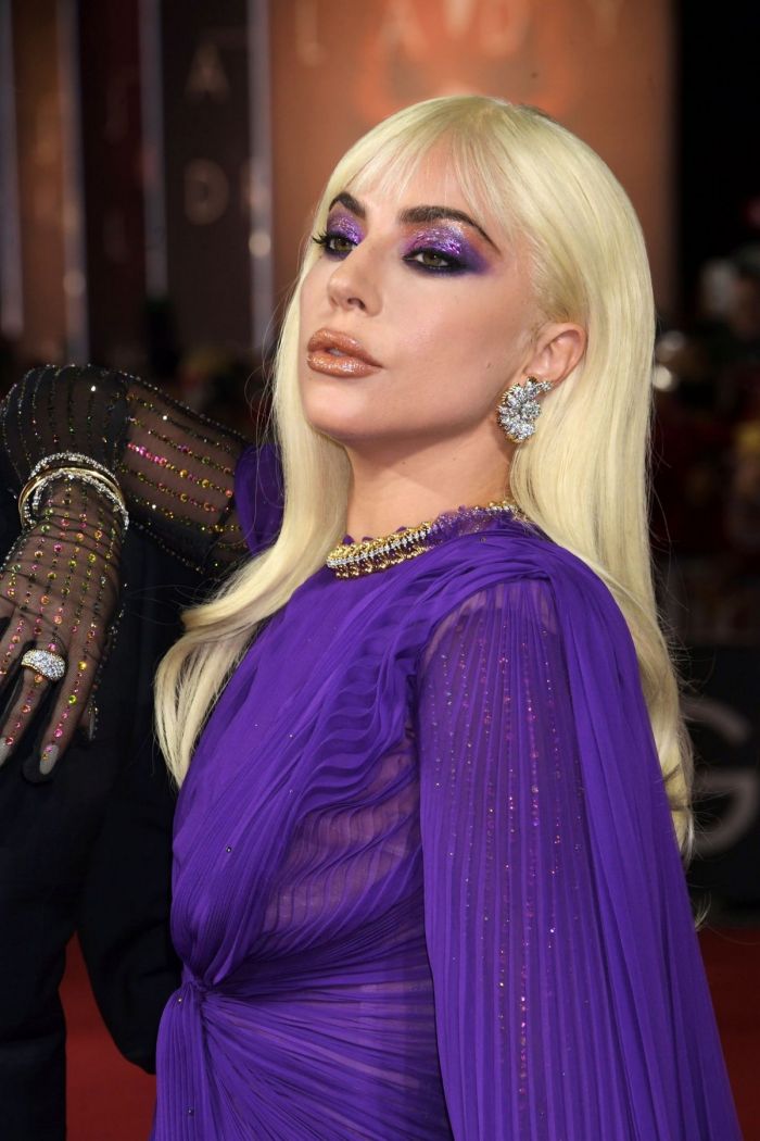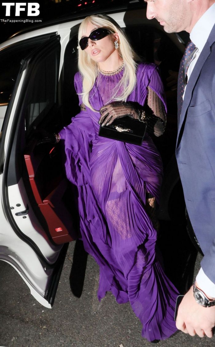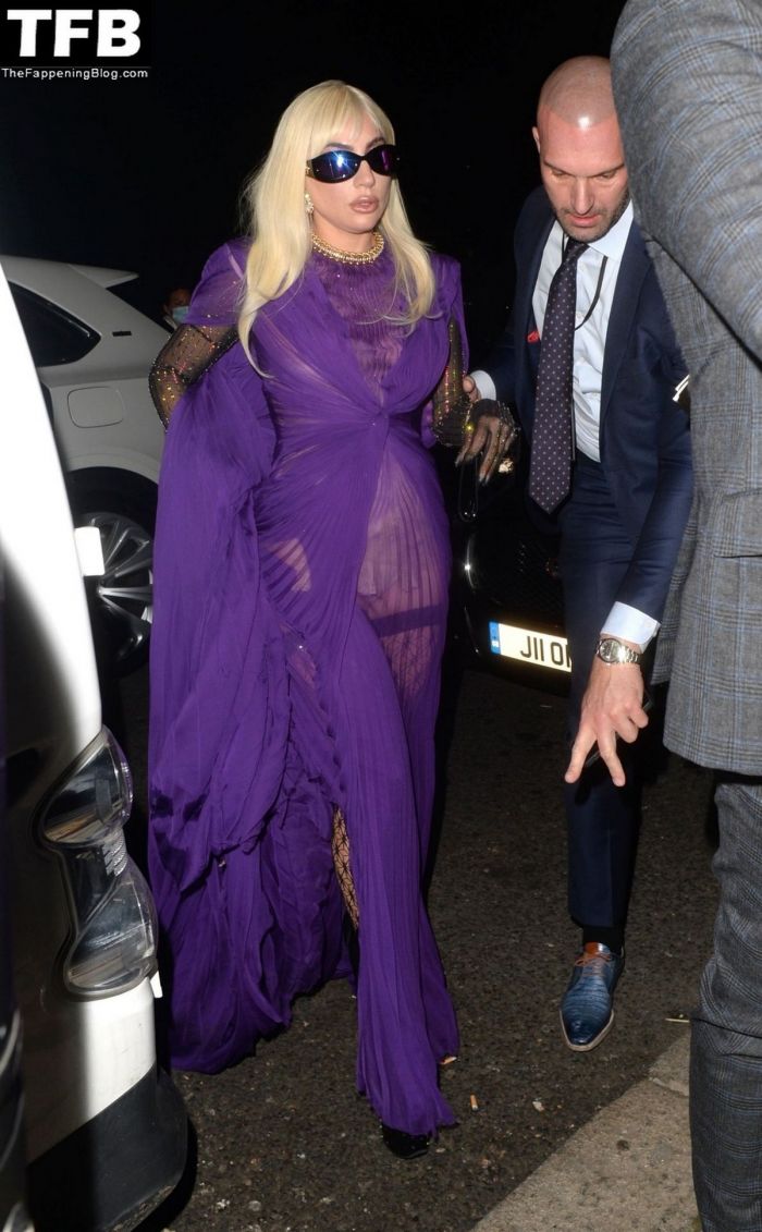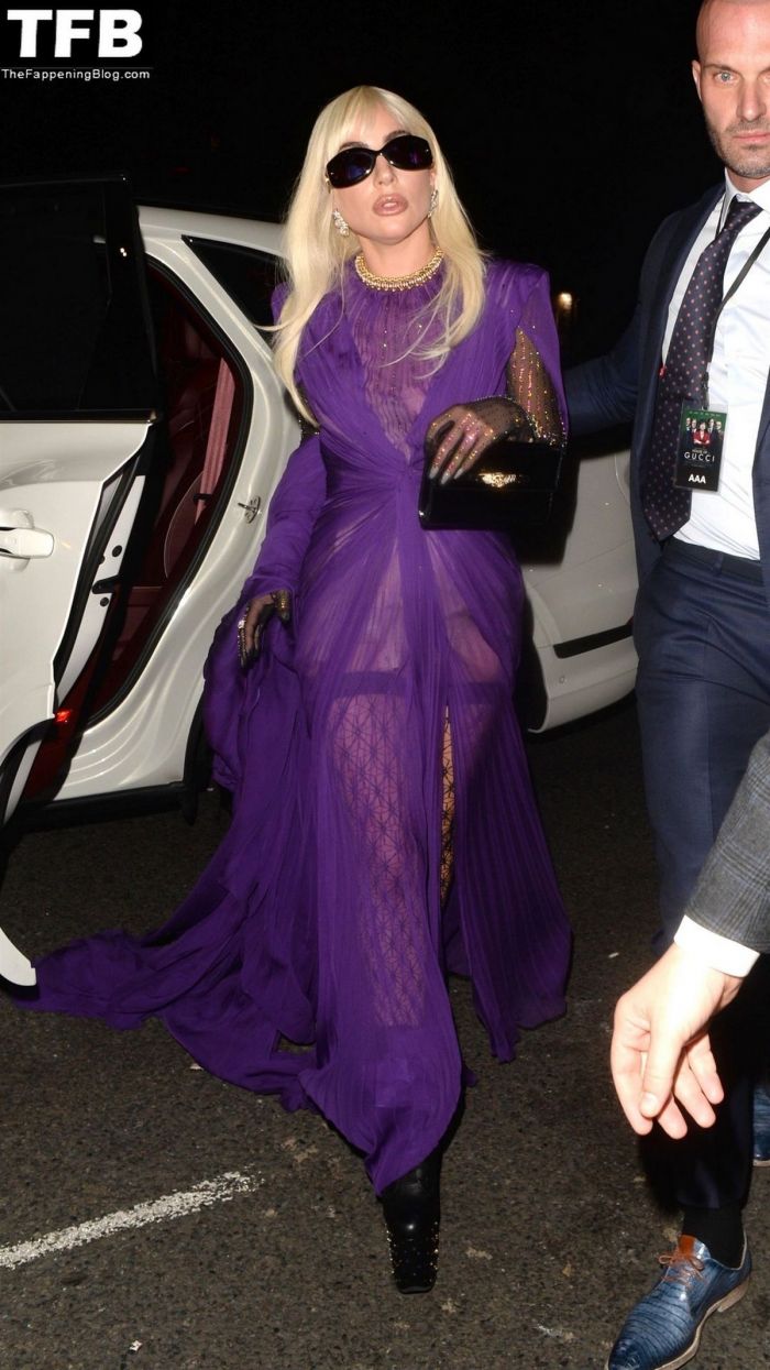 35-летняя американская певица, автор песен, продюсер, филантроп, дизайнер и актриса Леди Гага (Lady Gaga) в сексуальном платье позирует на красной дорожке для премьеры "Дома Гуччи" в Лондоне, Великобритания.