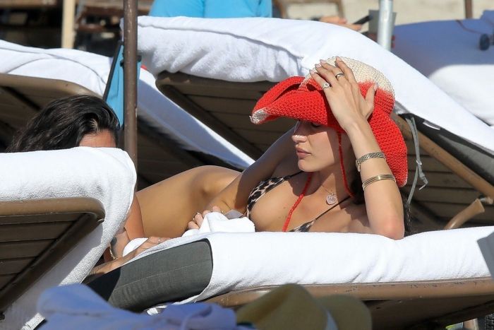 25-летняя американская модель палестино-голландского происхождения Белла Хадид (Bella Hadid) на пляже в Майами