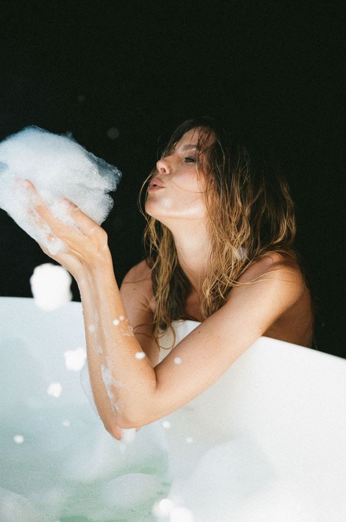 31-летняя австралийская модель Натали Розер (Natalie Roser) позирует в ванной на фотосессии для журнала Series №21 (2021).