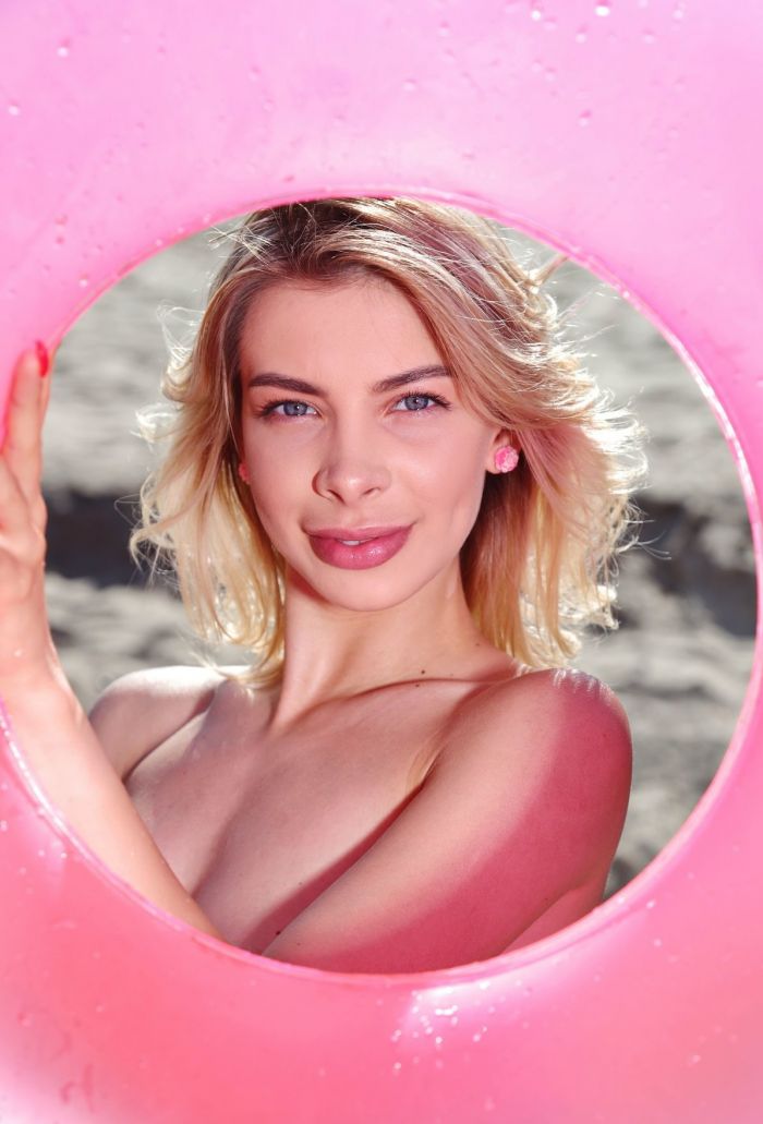 Похотливая зрелая блондинка с сексуальной упругой грудью без стеснения позирует на пляже и интригующе играется с розовыми трусиками. Раздевшись до гола и наслаждаясь теплой приятной водичкой, возбужденная …