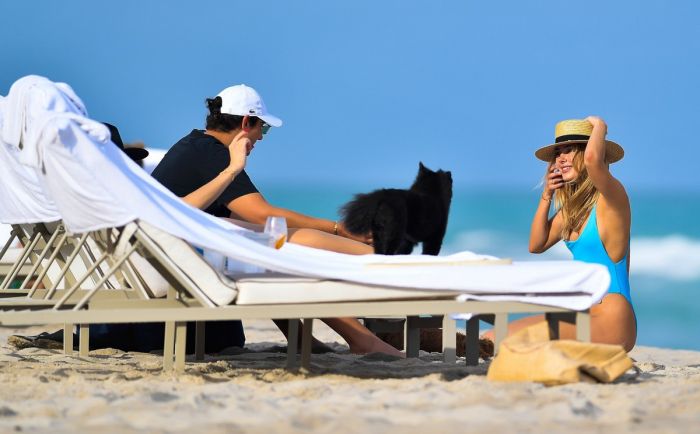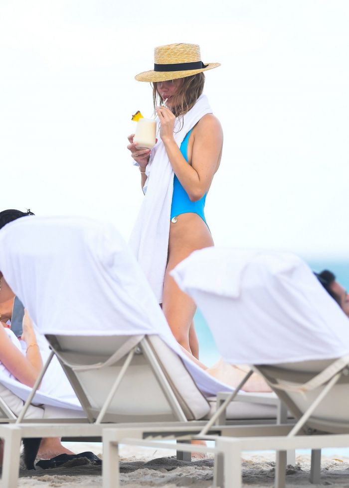 30-летняя британский дизайнер спортивной одежды, телеведущая, актриса и «светская львица» Кимберли Гарнер (Kimberley Garner) в купальнике на пляже в Майами.