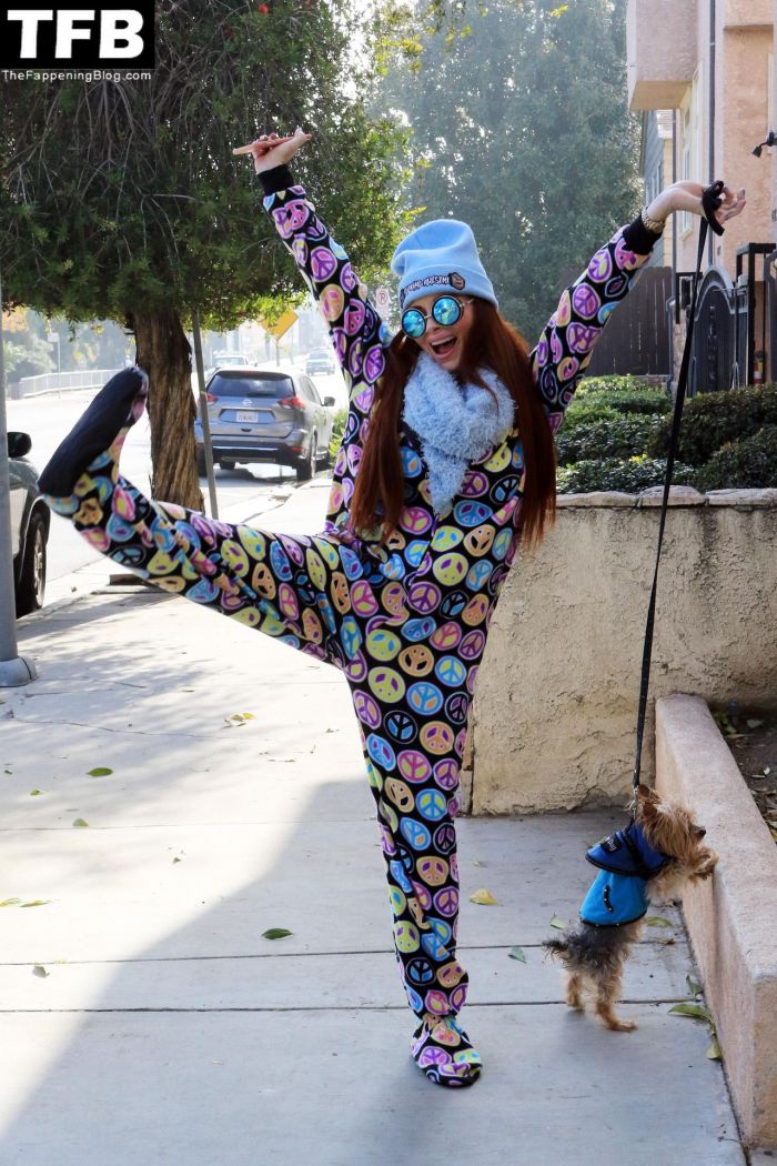 49-летняя американская актриса Фиби Прайс (Phoebe Price) хулиганит во время прогулки с собачкой на улице в Лос-Анджелесе.