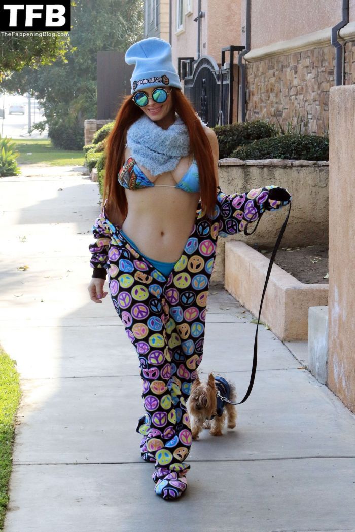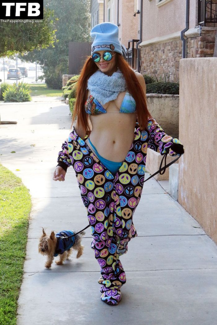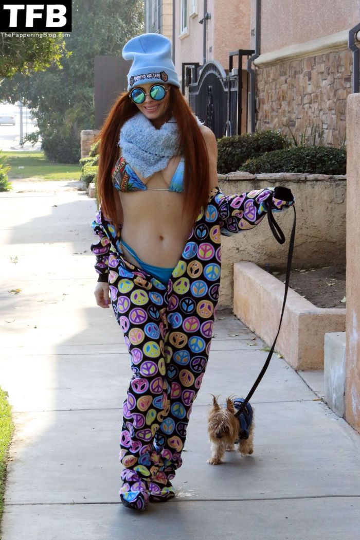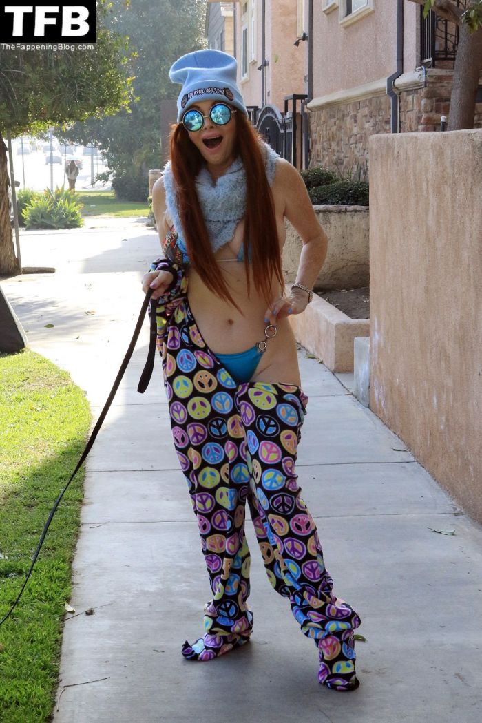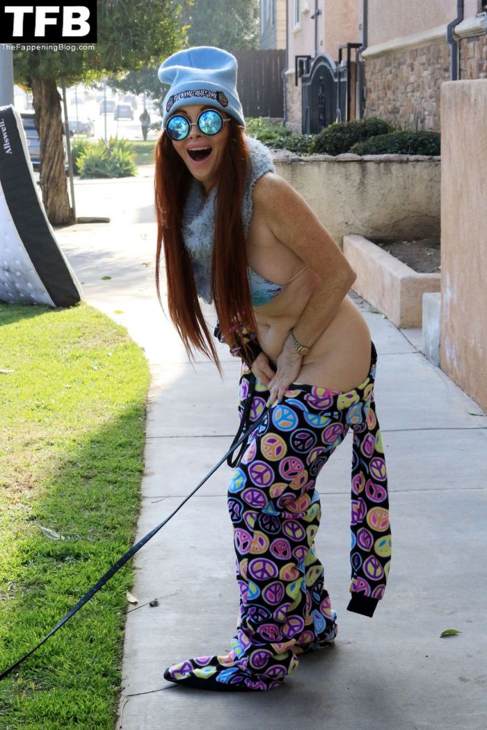 46-летняя американская актриса Фиби Прайс (Phoebe Price) в откровенном наряде прогулялась с собачкой