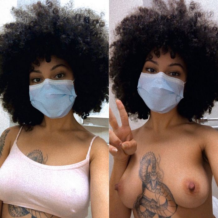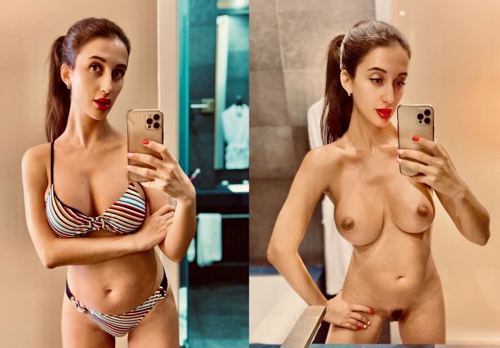 Горячая подборка фотографий девушек и женщин которые решили сделать селфи перед зеркалом, красотки на первой фотографии одетые, а на второй раздетые.