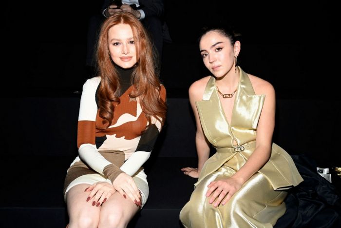 27-летняя американская актриса Мадлен Петш (Madelaine Petsch) в сексуальном платье на показе мод Fendi Couture S/S 2022 в Париже.