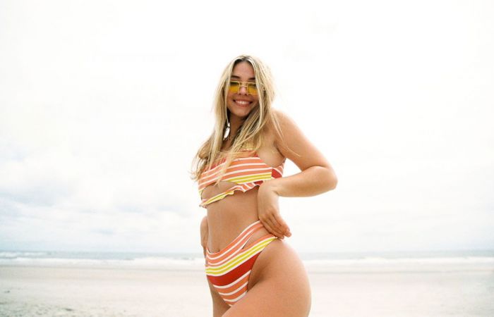 24-летняя американская актриса и модель Мэдлин Клайн (Madelyn Cline) позирует в купальниках для кампании Aro Swimwear 2021.