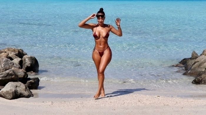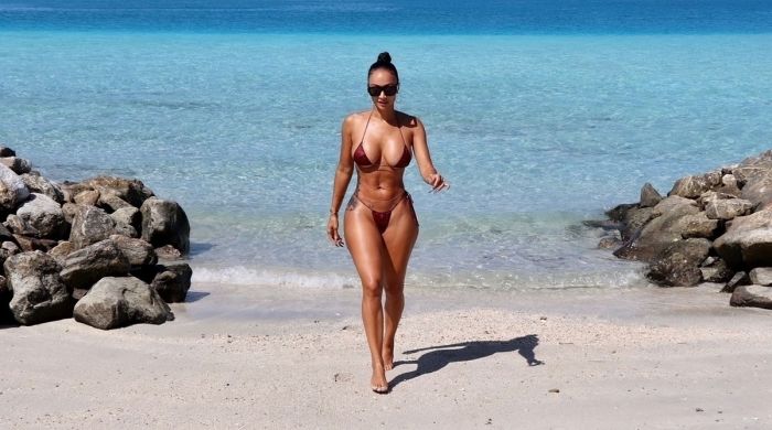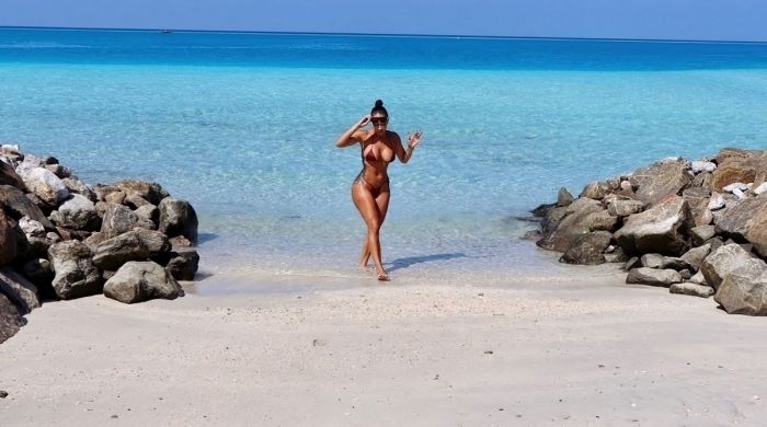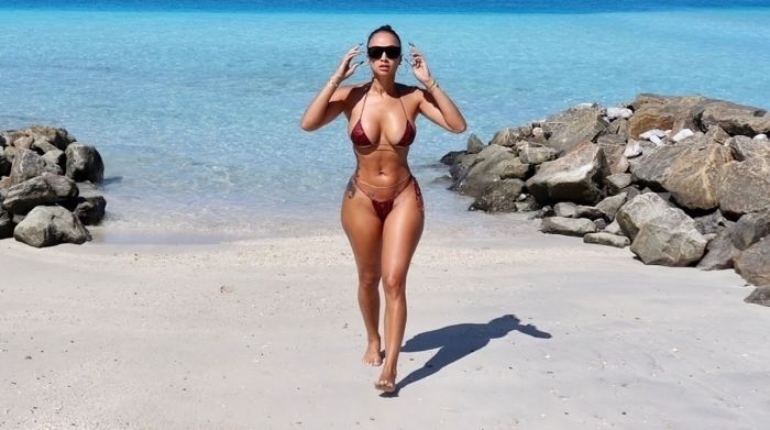 37-летняя американская медийная личность, модель, актриса и модельер Дрейя Мишель (Draya Michele) в бикини на пляже на Мальдивах.
