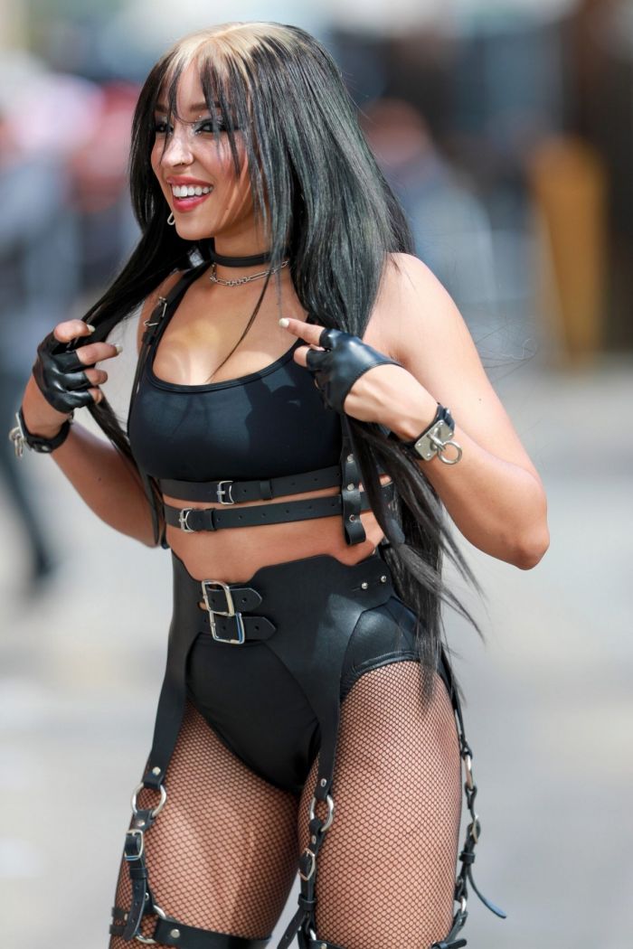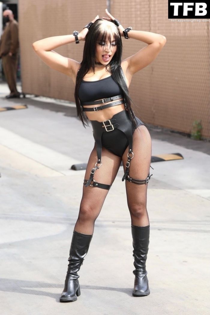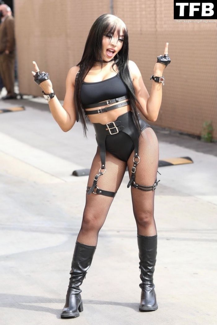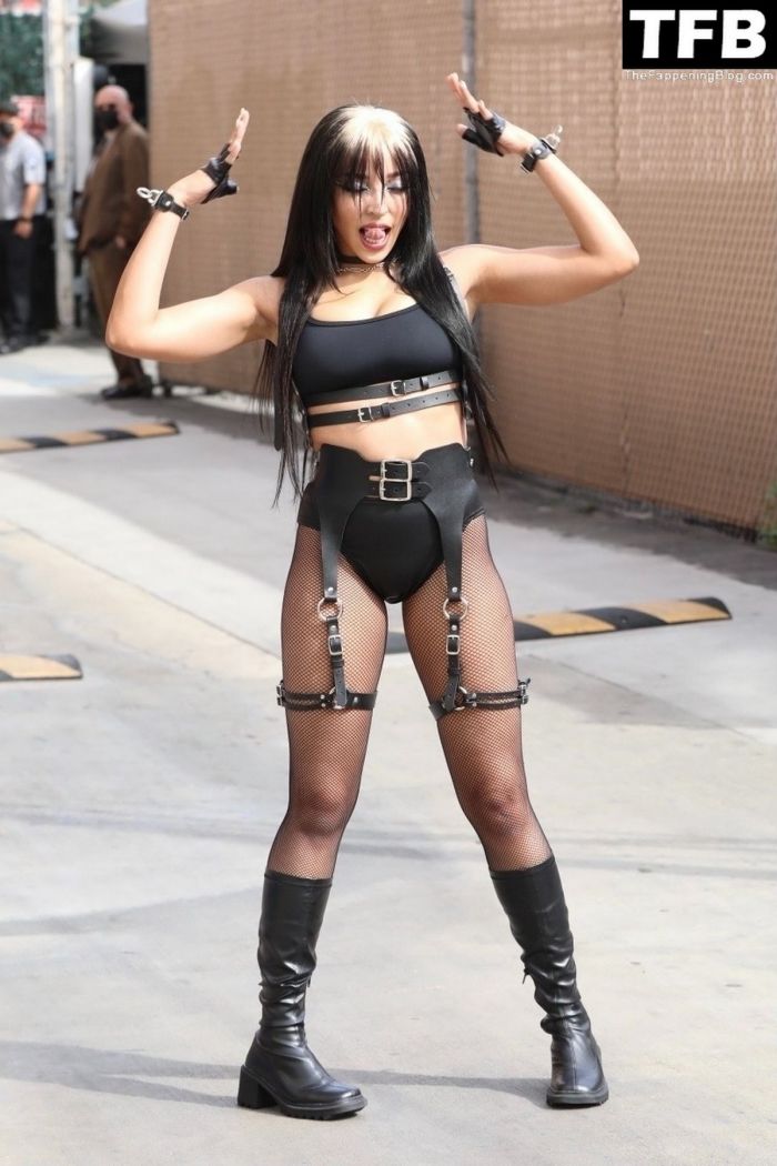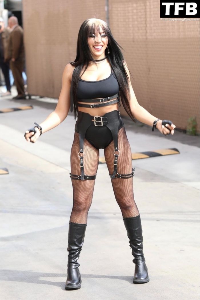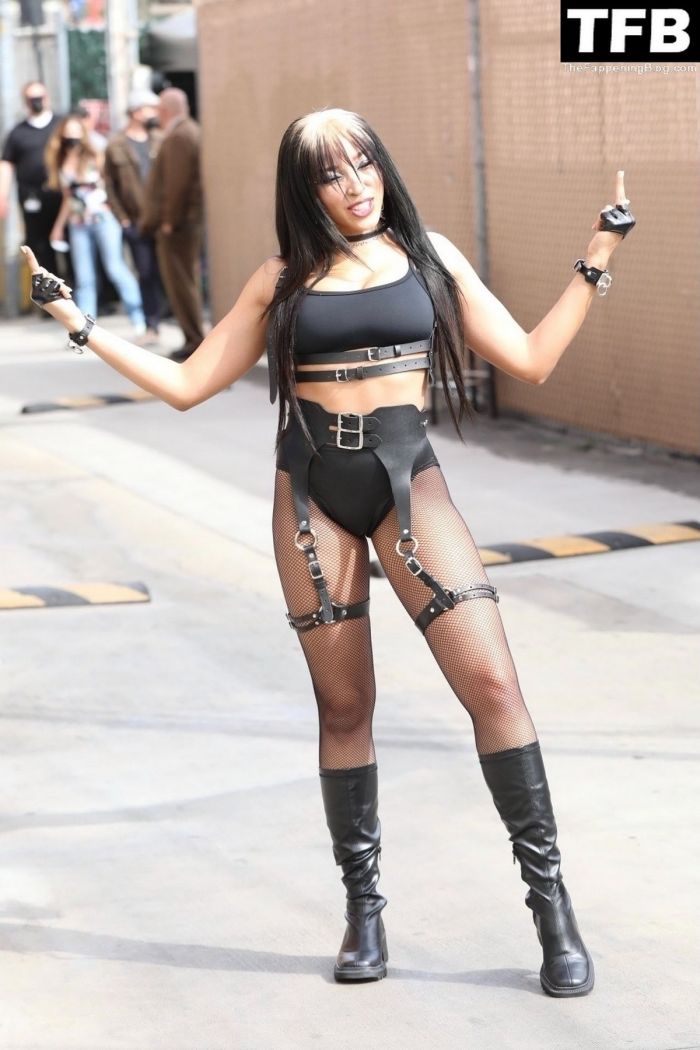 29-летняя американская певица, автор песен, танцор, продюсер и актриса Тинаше (Tinashe) в экстравагантном наряде прибыла на шоу Jimmy Kimmel Live в Голливуде.