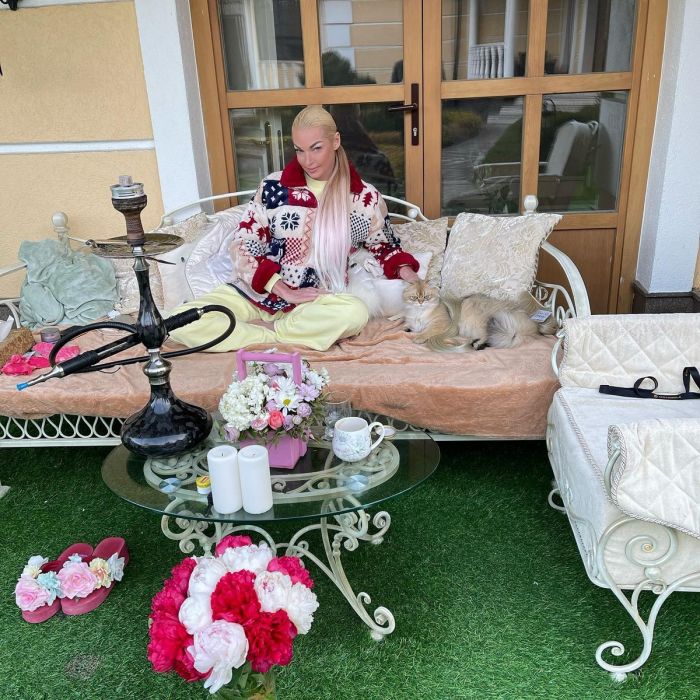 46-летняя российская артистка балета, танцовщица и общественный деятель Анастасия Волочкова на снимках в Instagram (май 2022). На страницу Анастасии подписаны более 1,3 млн человек.