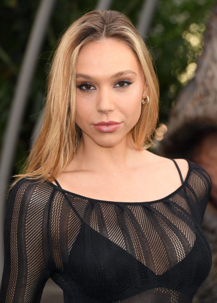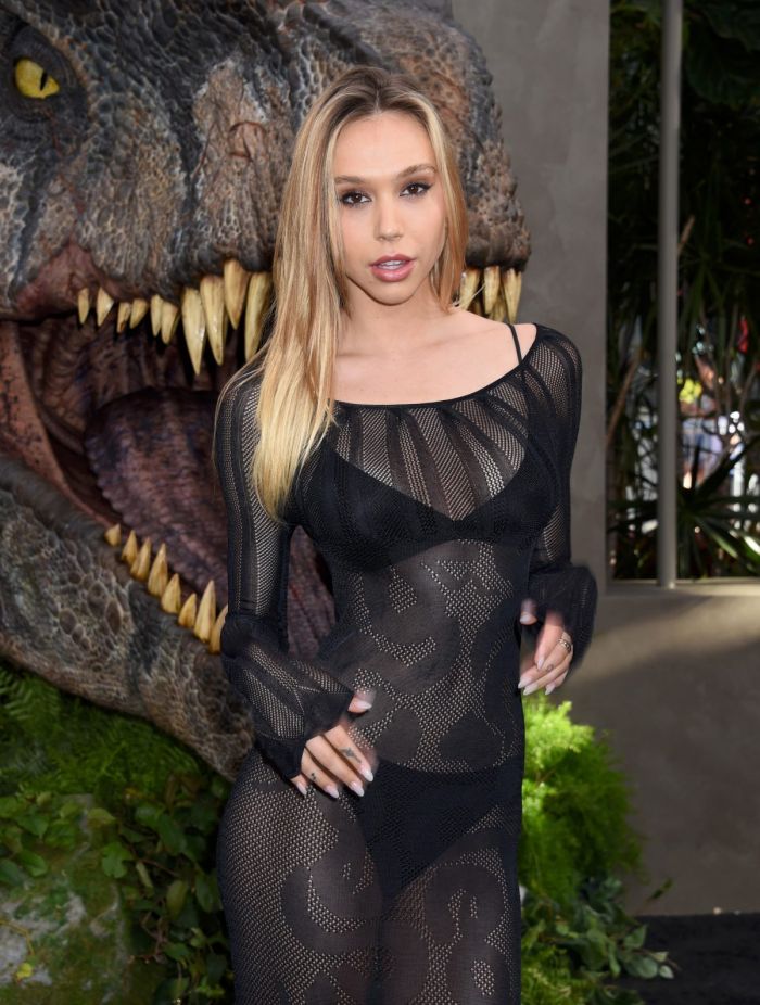25-летняя американская модель Алексис Рен (Alexis Ren) в просвечивающем платье на премьере фильма “Мир юрского периода: Господство” в Лос-Анджелесе.