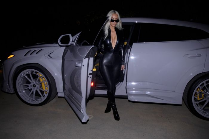 41-летняя американская звезда реалити-шоу, актриса, фотомодель и бизнесвумен Ким Кардашьян (Kim Kardashian) в обтягивающем наряде на улице в Лос-Анджелесе.