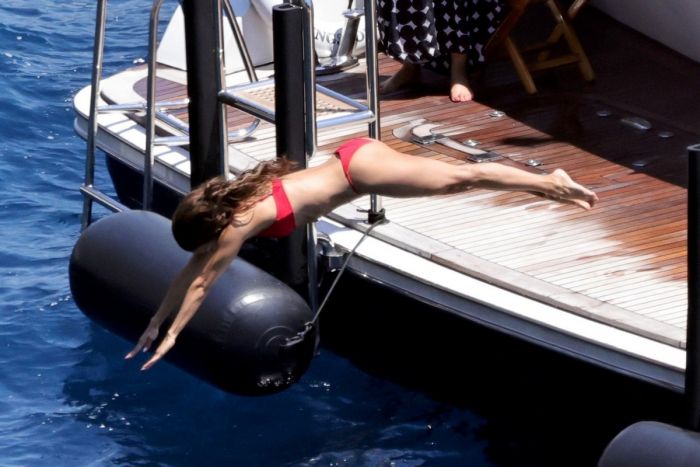 47-летняя американская актриса, продюсер, режиссёр, активист и предприниматель Ева Лонгория (Eva Longoria) в бикини отдыхает на катере на Капри.