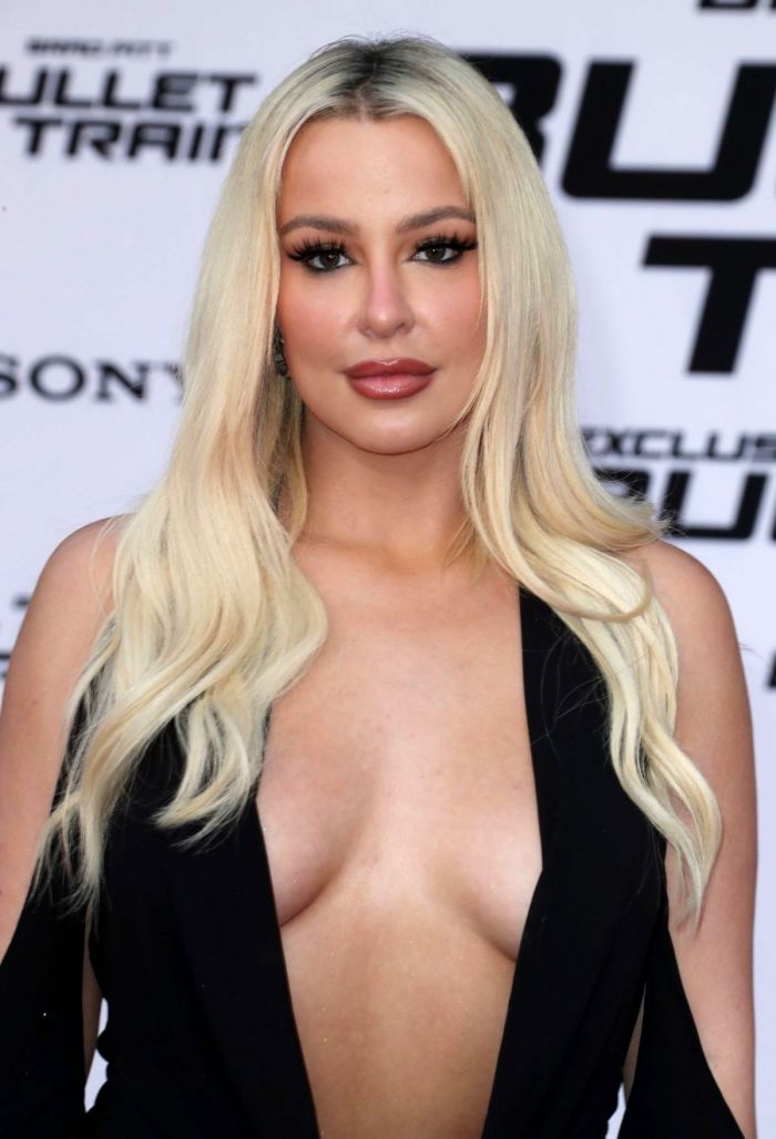 24-летняя американская модель и интернет-знаменитость Тана Монго (Tana Mongeau) в сексуальном платье на премьере фильма "Быстрее пули" в Лос-Анджелесе.