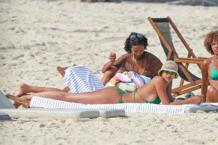 31-летняя бразильская топ-модель Лаис Рибейро (Lais Ribeiro) в бикини отдыхает с друзьями на пляже в Рио-де-Жанейро.
