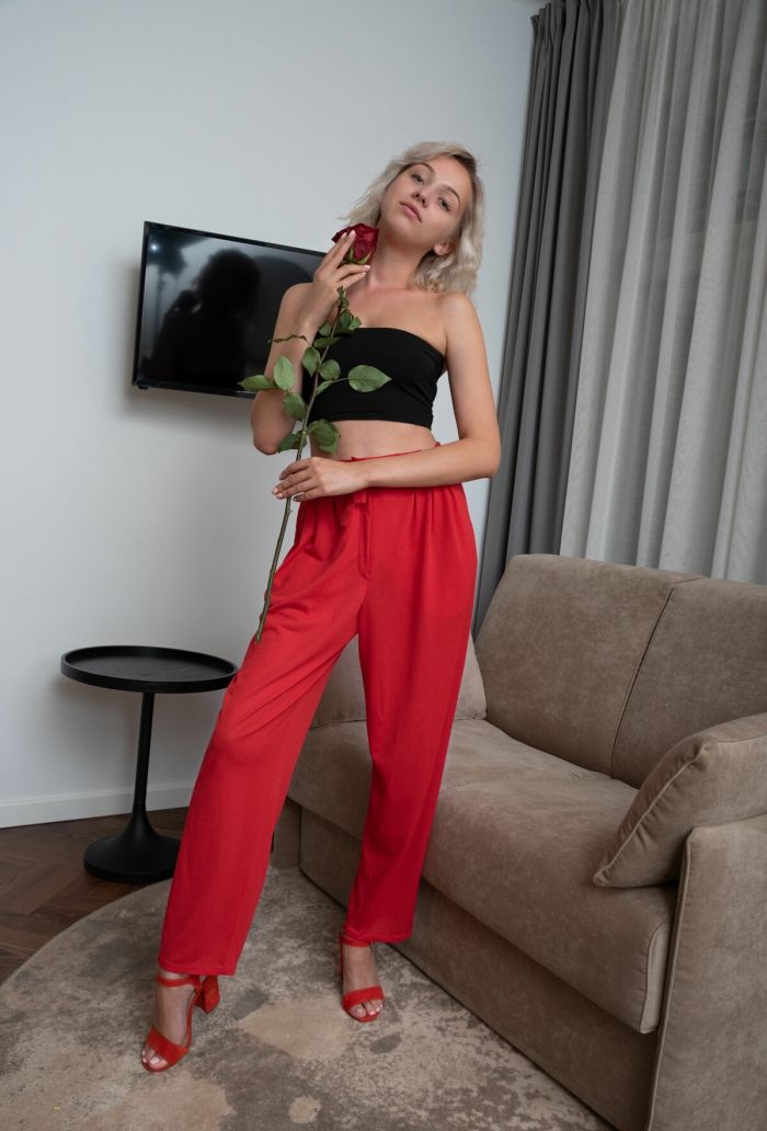 Похотливая девушка страстно срывает с себя всю одежду и, развалившись голышом на мягком диване, демонстрирует во всей красе своё сексуальное тело.