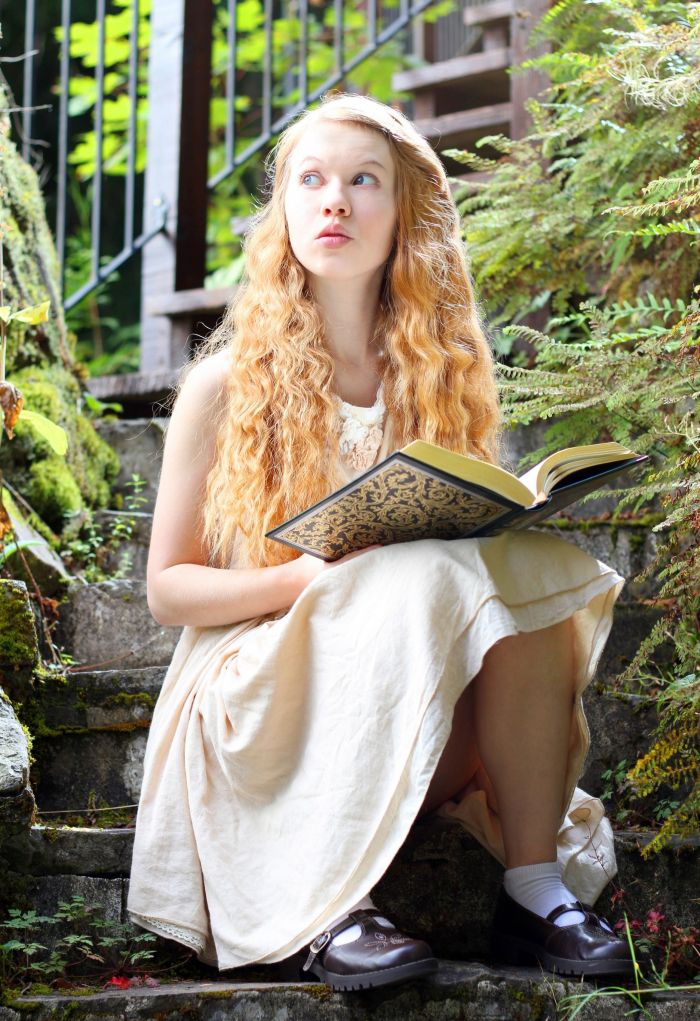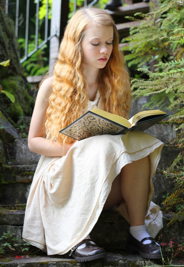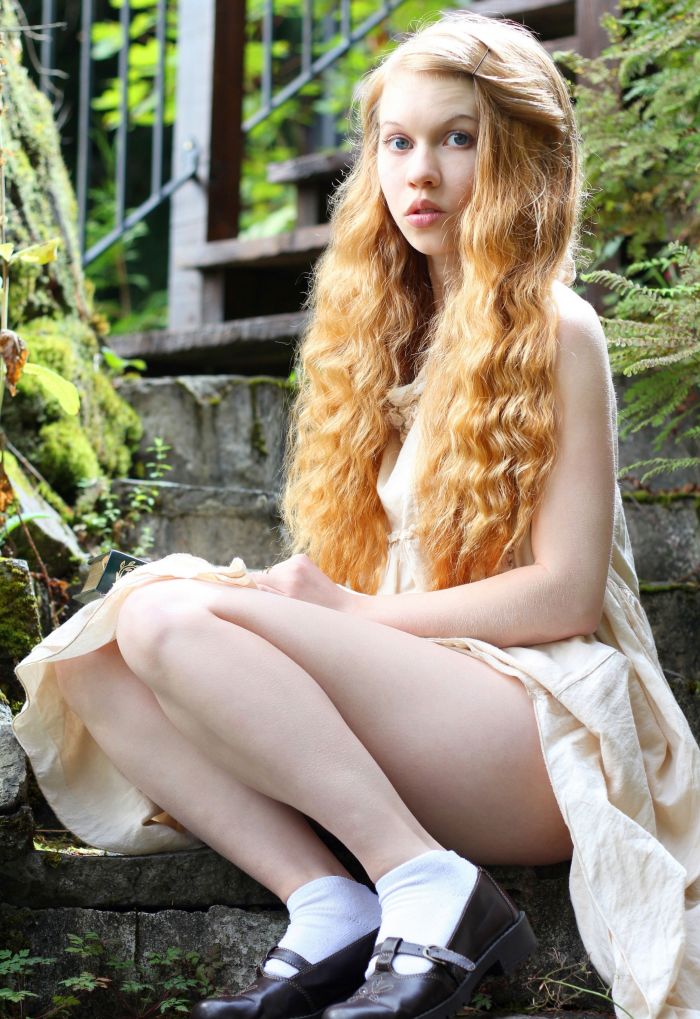 Затаившись в парке в тихом укромном месте, молодая рыженькая девушка без трусиков увлеченно читает книжку и, периодически меняя свое положение, показала между ног свою бритую розовую киску.