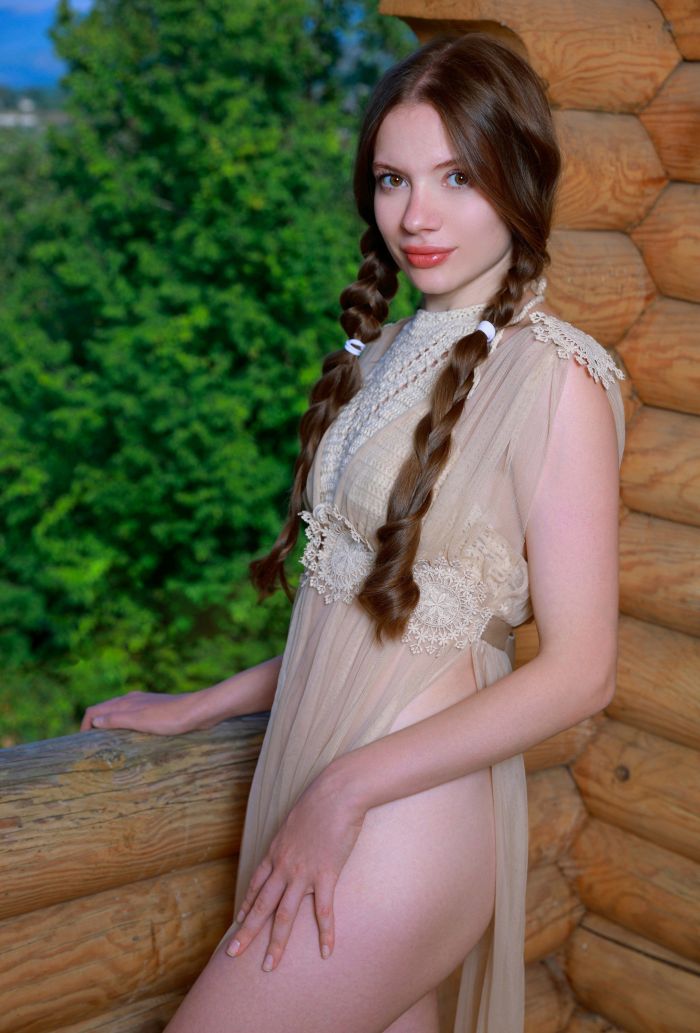 Эротично позируя в деревянной беседке на фоне природы, стройная девушка с яркими сочными губками медленно разделась до гола и без стеснения принялась хвастаться на камеру своими сладкими прелестями.