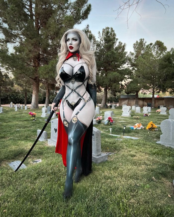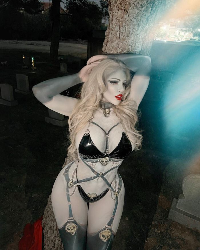 Модель Playboy известна своими почти идентичными косплеями множества известных персонажей, включая Мистик из фильмов “Люди Икс”, куклу-убийцу Тиффани Валентайн из “Невесты Чаки” и Черную вдову из фильмов Marvel.