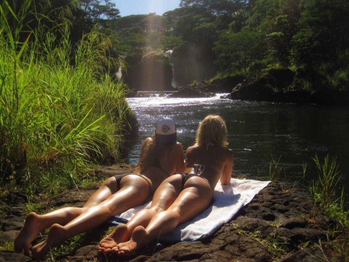 Обнажённые девушки на отдыхе для поднятия тонуса