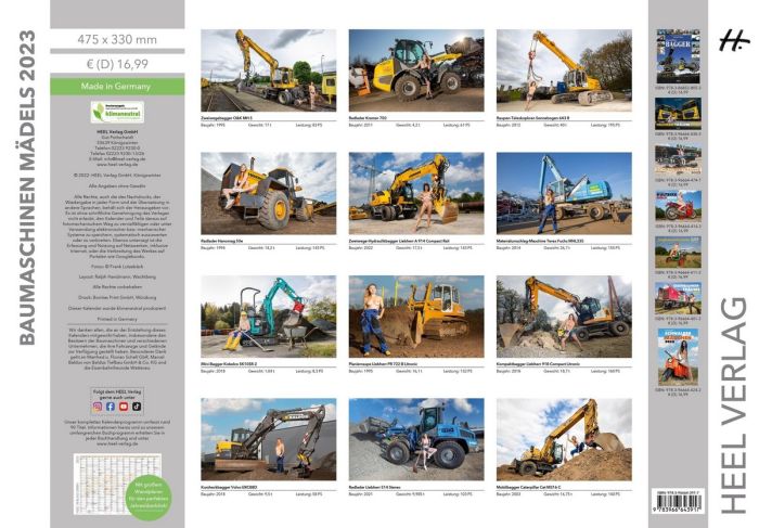 В продаже появился горячий календарь с девушками и строительной техникой "Baumaschinen Mädels 2023". Чувственные, грациозные женщины, сфотографированные перед гигантской строительной техникой – это создает взрывоопасную смесь. В этом календаре действительно есть что-то для каждого любителя строительной техники: будь то колесные погрузчики или цепные экскаваторы, огромная красота внушительных машин, круто контрастирует с сексуальными девушками. Календарь представляет множество различных типов и конструкций в тщательно продуманных сценах и доказывает, что эстетическая эротическая фотография возможна даже с этими гигантами строительных площадок. Приобрести календарь можно на сайте weltbild.at за 16.99 евро.