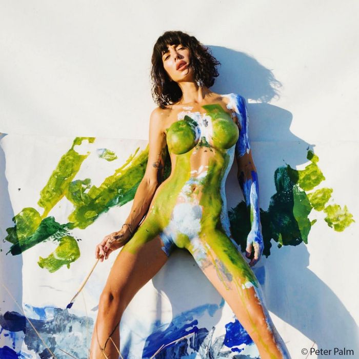39-летняя швейцарская концептуальная художница и модель, известная своими выступлениями в обнажённом виде, перформансами и рисованием на собственном теле, Мило Муаре (Milo Moiré) на фотографиях из социальных сетей.