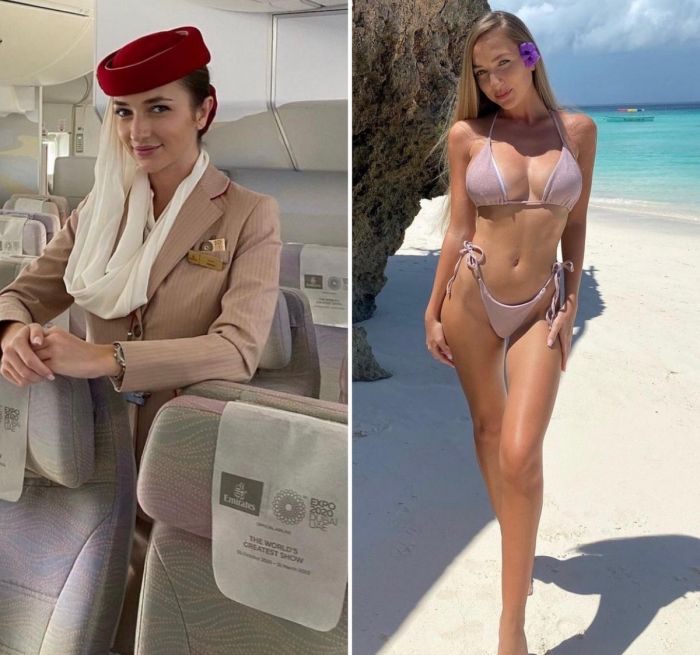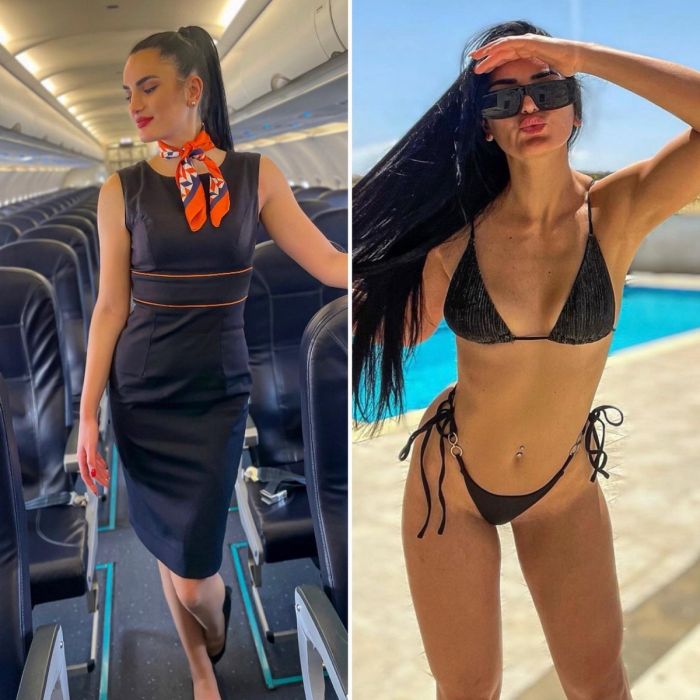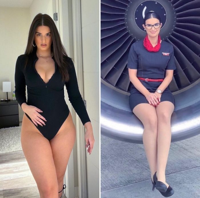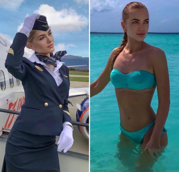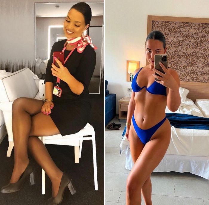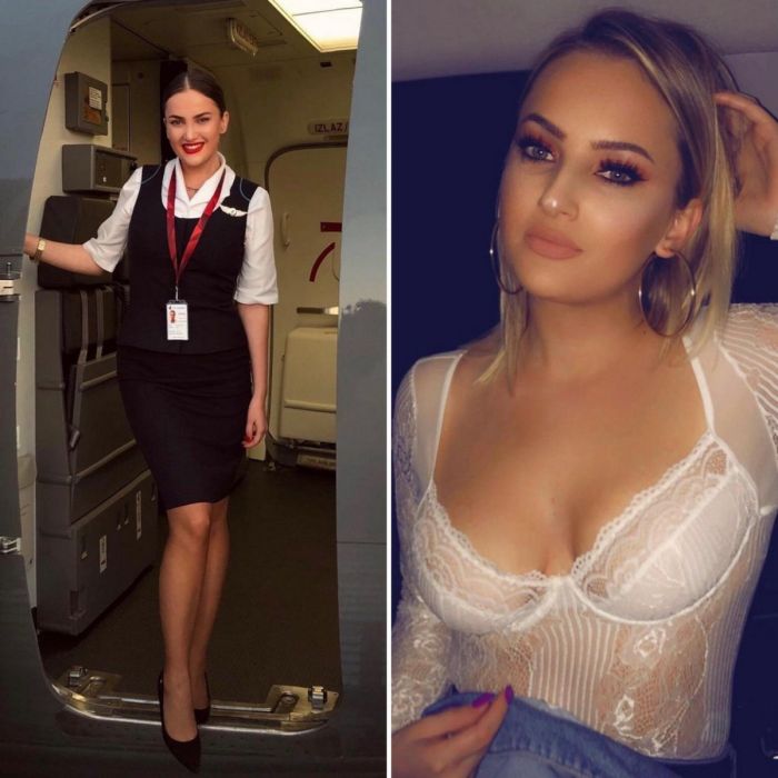 Многие бортпроводницы выглядят так, будто сошли с обложки глянца. Привлекательные, стройные, высокие девушки всегда притягивают к себе взгляды мужчин. Нетрудно догадаться, что авиакомпании намеренно набирают девушек, соответствующих определенным канонам. Давайте посмотрим на фотографии в хорошем качестве на которых соблазнительные бортпроводницы в рабочее время и на отдыхе выглядят абсолютно по-разному!