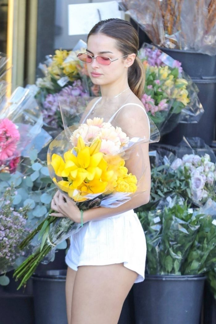 22-летняя американская певица, танцовщица и актриса Эддисон Рэй (Addison Rae) в белых маечке и шортиках после тренировки в Лос-Анджелесе.