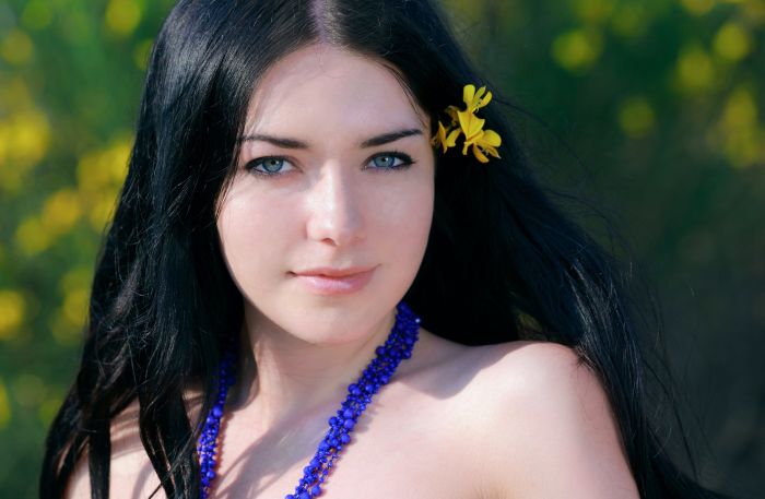 Голая брюнетка на природе
