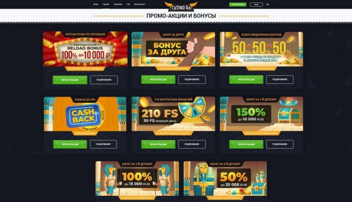 Воспользоваться акционным предложением Casino Ra можно только в будние дни. По выходным бонус не доступен.