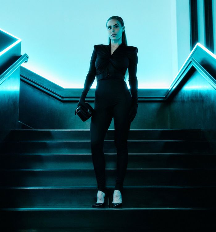 20-летняя американская певица, танцовщица и актриса Эддисон Рэй (Addison Rae) в кружевном комбинезоне