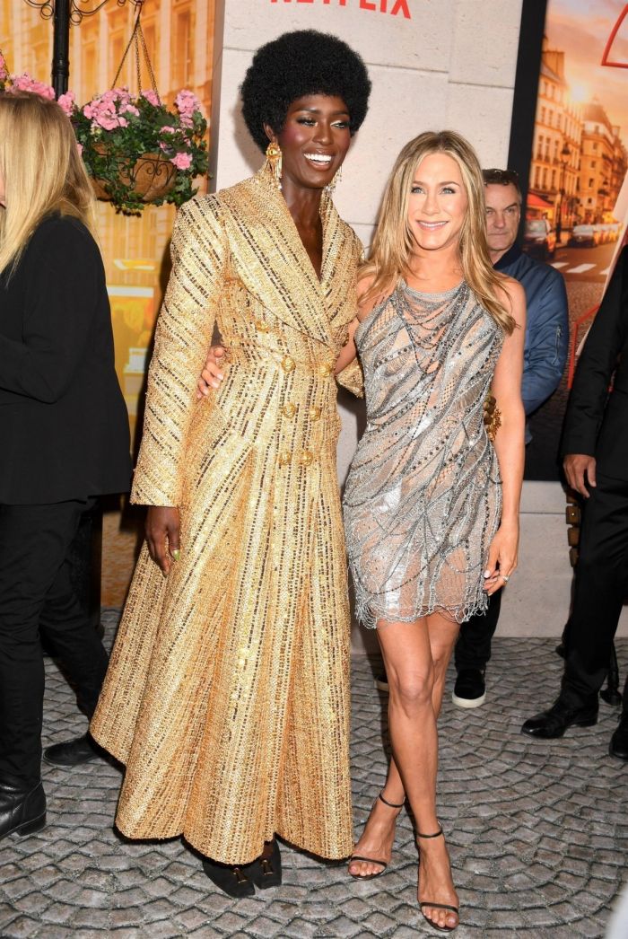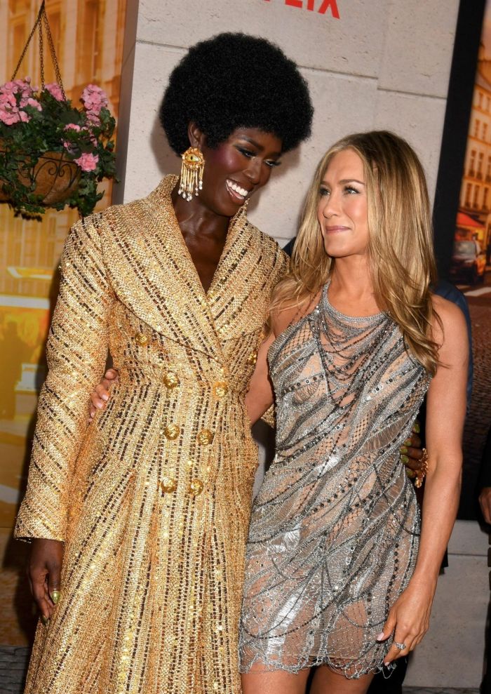 54-летняя американская актриса, кинорежиссёр и продюсер Дженнифер Энистон (Jennifer Aniston) в сексуальном платье на премьере фильма Netflix "Тайны убийства 2" в Лос-Анджелесе.