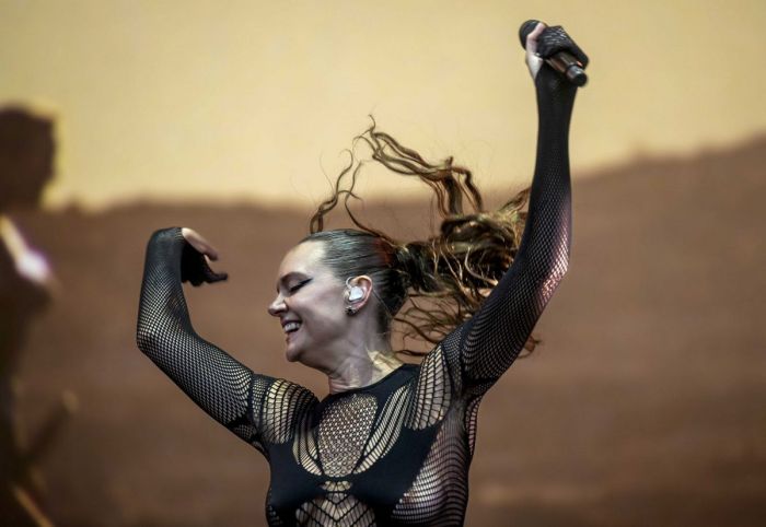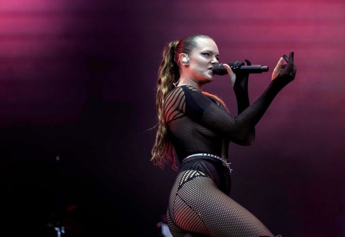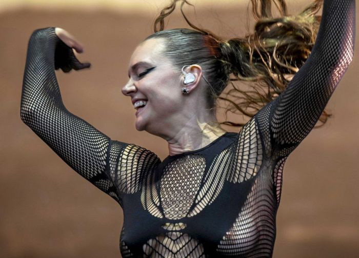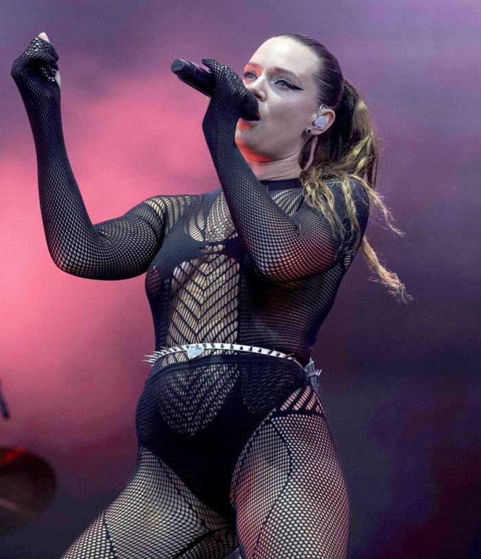 35-летняя шведская певица и автор песен Туве Лу (Tove Lo) в просвечивающем наряде на сцене фестиваля Way Out West показала свою сексуальную грудь.