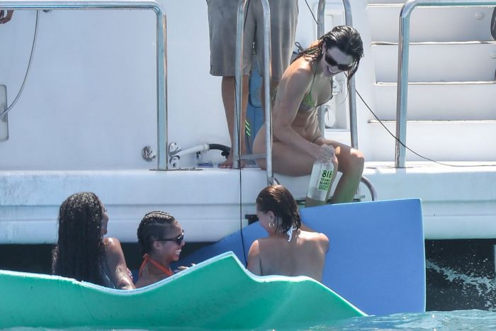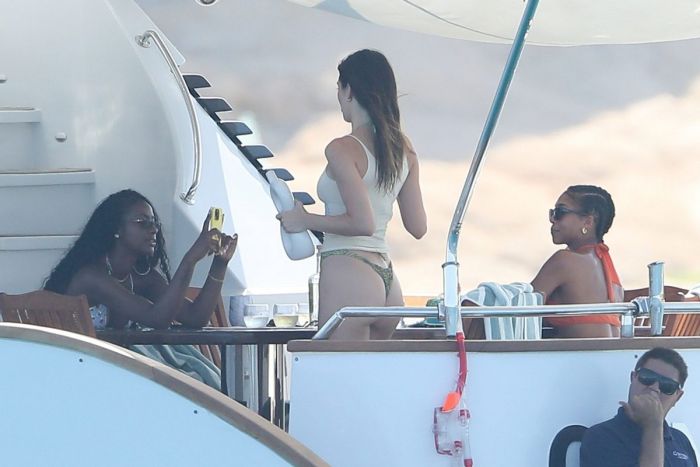 27-летняя американская модель Кендалл Дженнер (Kendall Jenner) в сексуальном бикини отдыхает с друзьями на яхте.