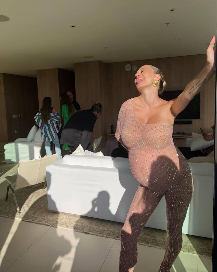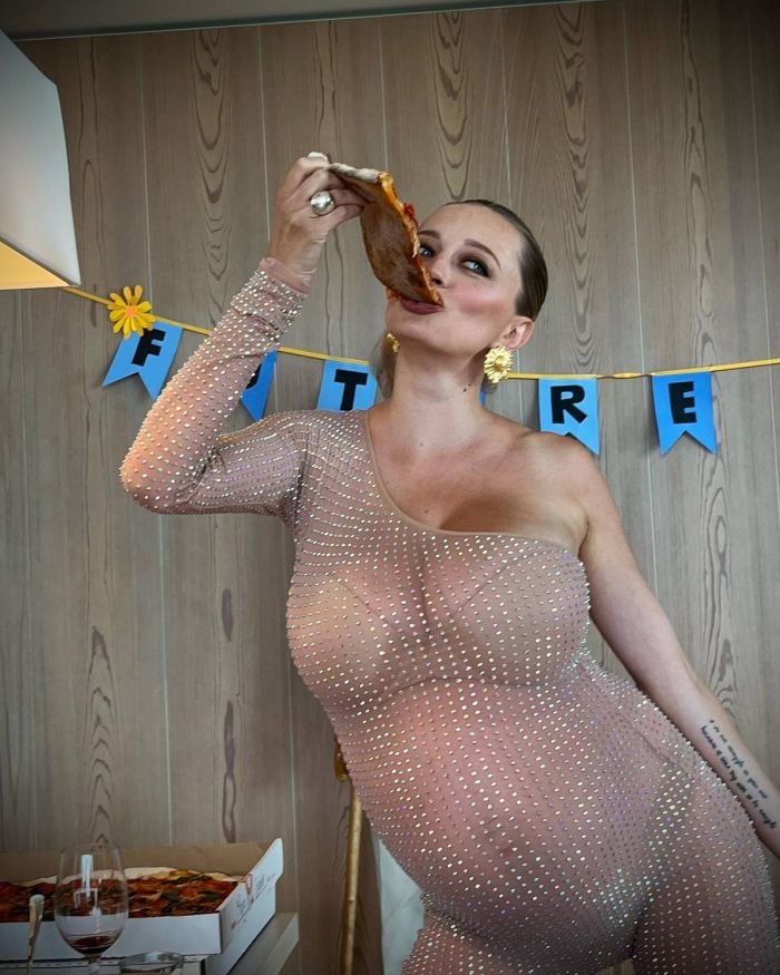 35-летняя немецко-американская певица, автор песен, актриса, обозреватель и модель Кэролин Врилэнд (Caroline Vreeland) продемонстрировала большой живот.