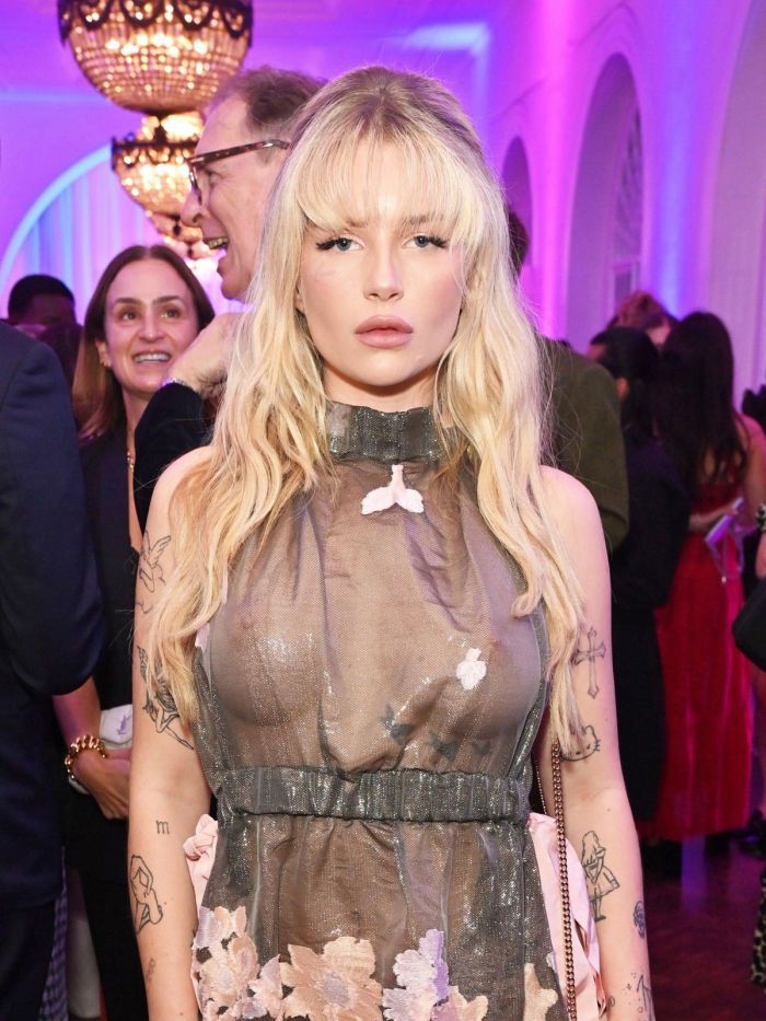 Красотка 25-летняя международная модель Лотти Мосс (Lottie Moss) засветила грудь в просвечивающем платье.