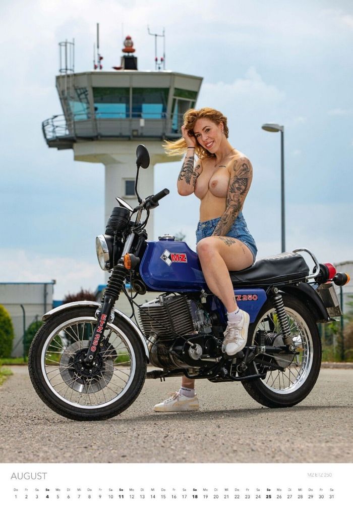 В продаже появился горячий календарь с голыми девушками и мотоциклами "MZ-Mädels 2024". На его страницах 12 привлекательных девушек позируют топлес с культовыми мотоциклами MZ.