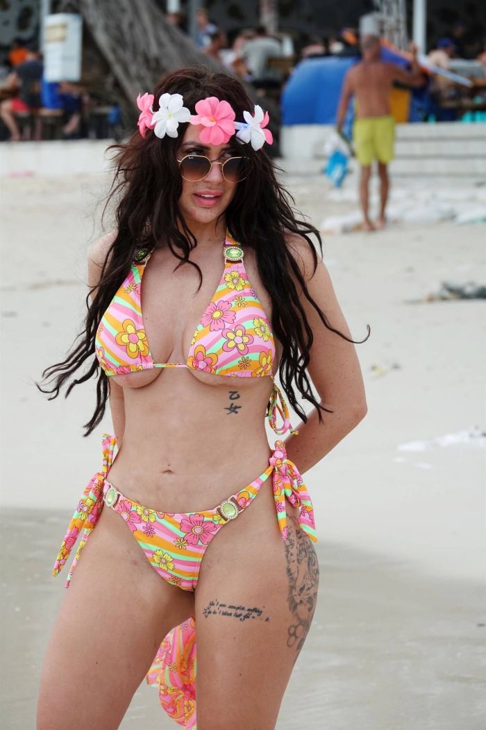 28-летняя английская телеведущая и телезвезда Хлоя Ферри (Chloe Ferry) в откровенном бикини на пляже во время отдыха.