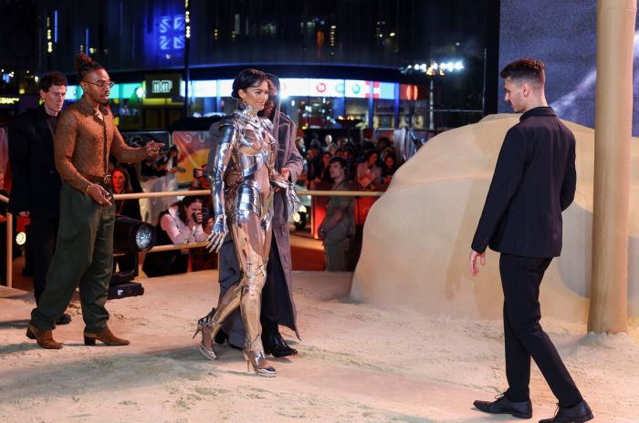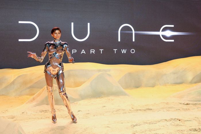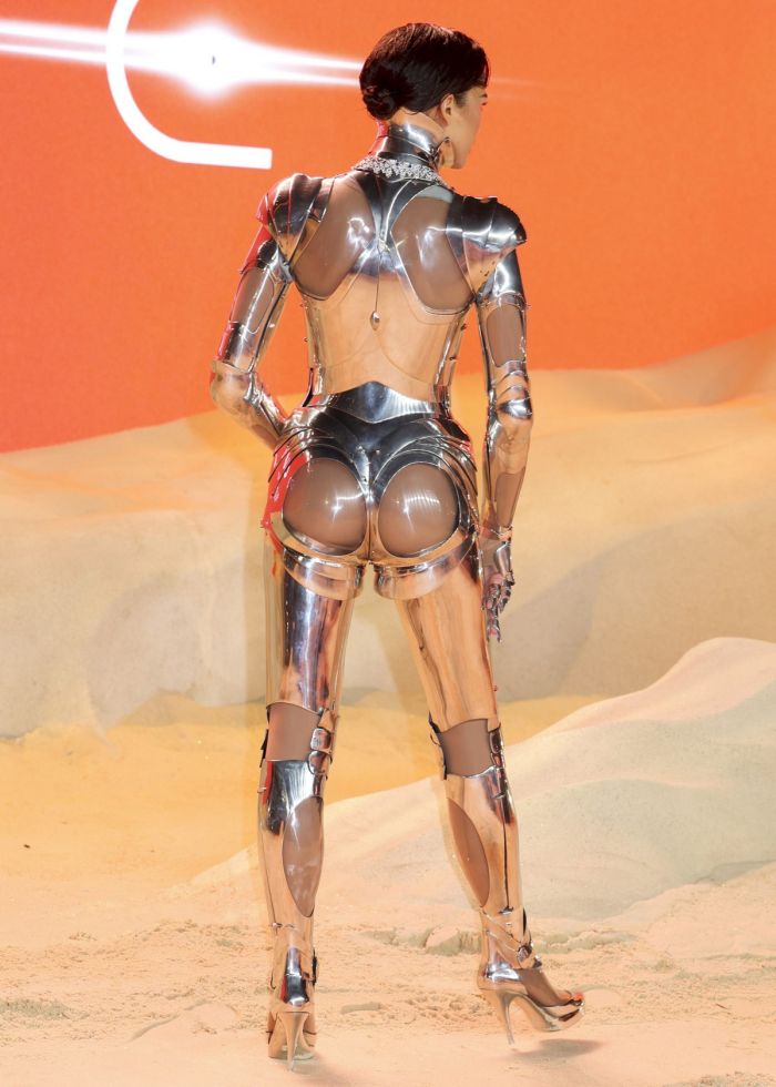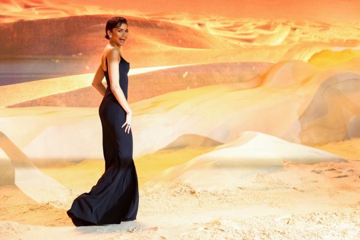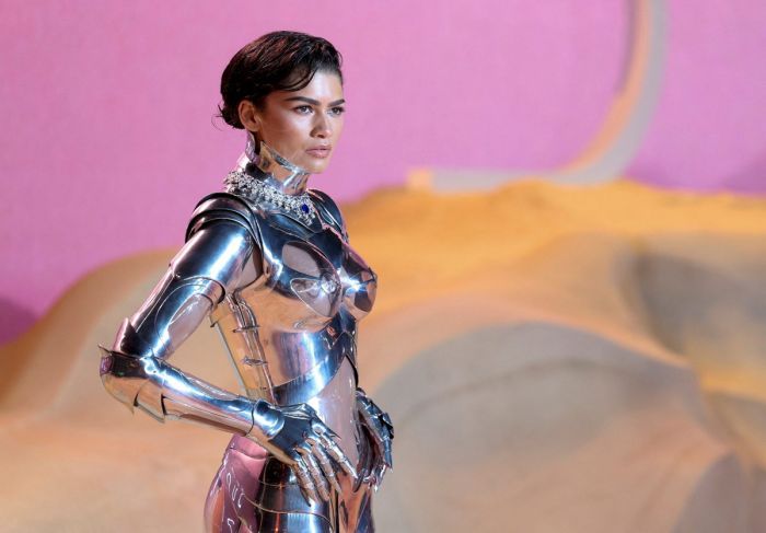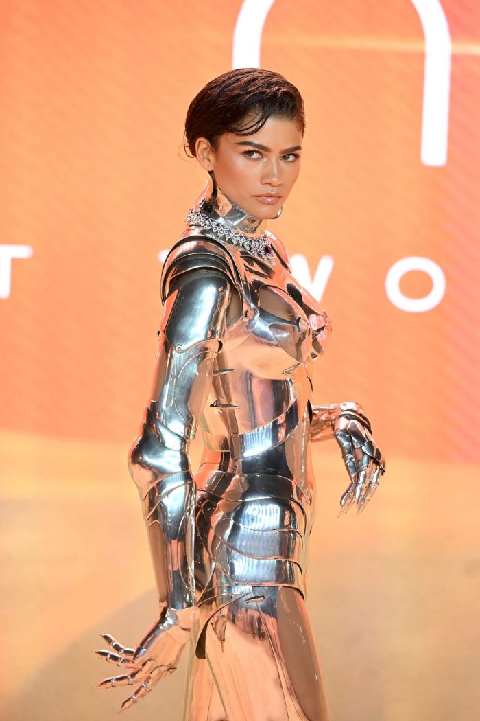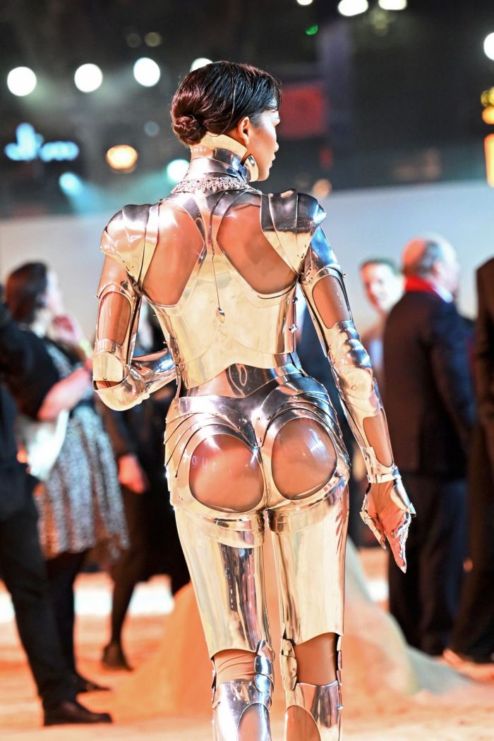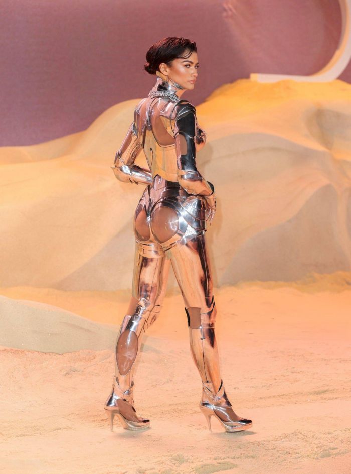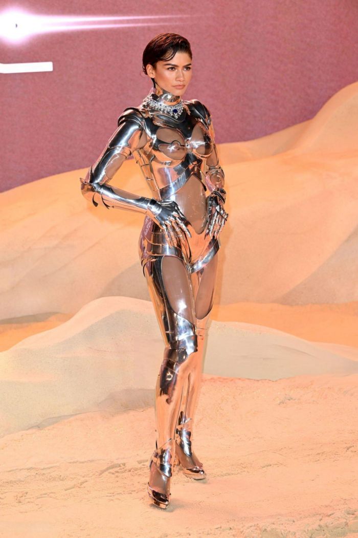27-летняя американская актриса, певица, танцовщица и модель Зендея (Zendaya) в экстравагантном наряде на премьере фильма "Дюна".