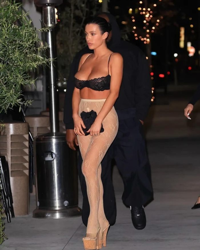 В среду 29-летняя Бьянка отправилась на ужин со своим 46-летним мужем Канье Уэстом. Они посетили высококлассный французский ресторан. Рэпер прятался за своей типичной черной одеждой и мешковатым пиджаком, но Бьянке повезло меньше. На ней почти ничего не было, когда она неловко заходила в ресторан.