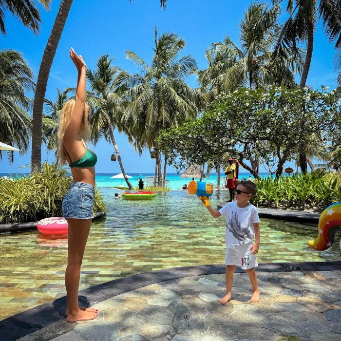 37-летняя российская актриса театра и кино, певица, фотомодель, телеведущая Анастасия Макеева отдыхает на Мальдивах