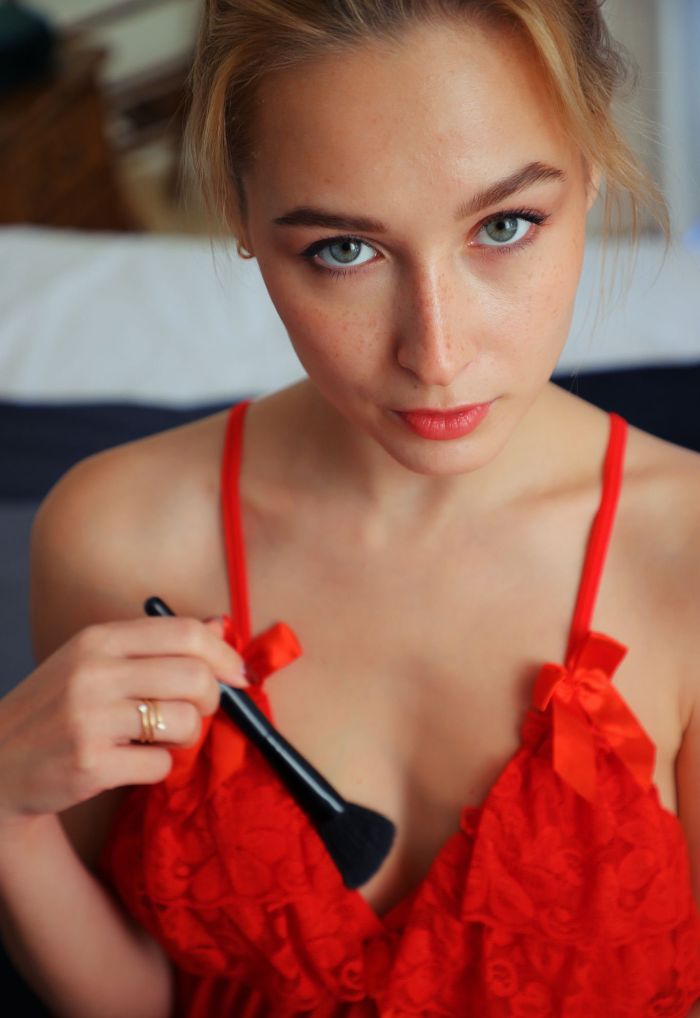 Быстро стянув с себя пеньюар и красные трусики, длинноногая красотка оголила перед нами свое стройное красивое тело и начала в разных позах хвастается упругой попой и сексуальной грудью, параллельно раскрывая крупным планом шикарные виды.