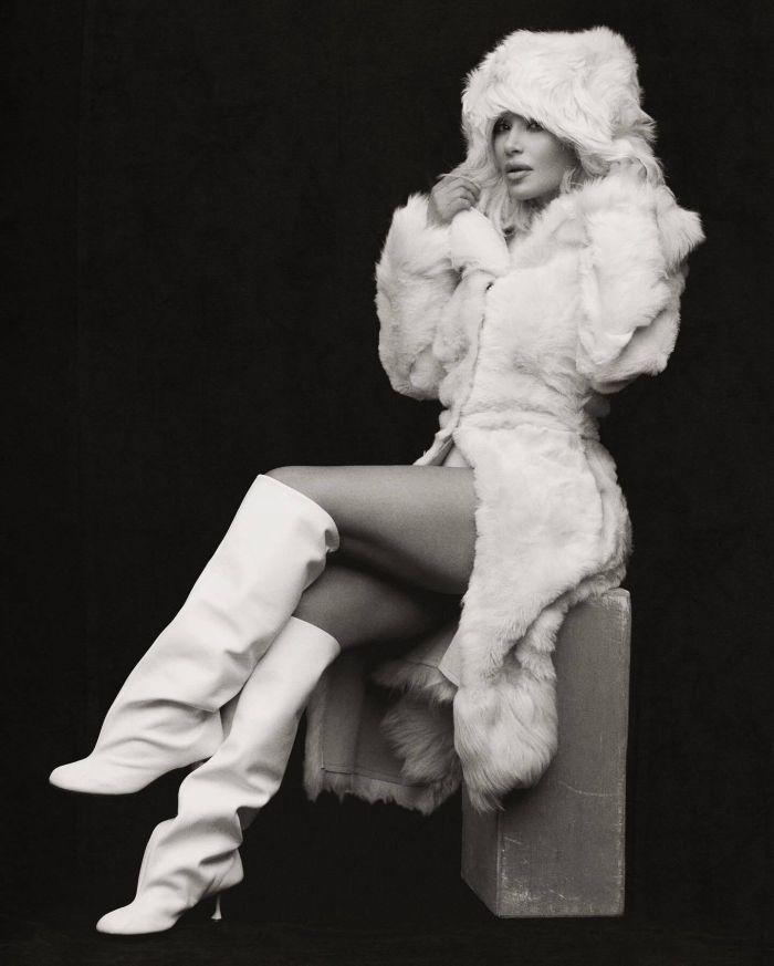 36-летняя американская звезда реалити-шоу, актриса и фотомодель Ким Кардашян (Kim Kardashian) в бюстгальтере и шубе