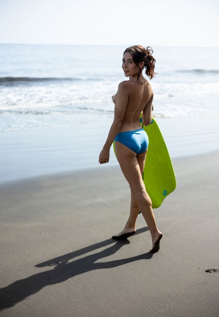 Весело проводя время на отдыхе у моря, молодая красотка с голой сексуальной грудью игриво стягивает с себя трусики на пляже и, безуспешно спрятавшись за огромным камнем, принялась в разных позах показывать свою аппетитную попку и бритую ...